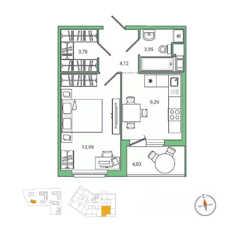 Продаётся 1 комнатная квартира 31 в ЖК Янила Драйв, 4 очередь, корпус 6