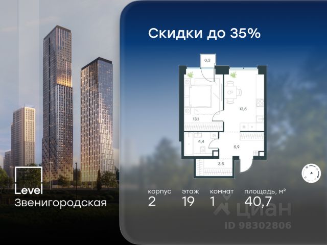Цена указана с учётом скидки при 100%-й оплате, несубсидированной ипотеке, рассрочке (кроме программы "Рассрочка 0%"). Продается 1-комнатная квартира площадью 42.10 кв. м без отделки. Квартира находится на 3 этаже 20-этажного корпуса 5, в новом жилом комплексе бизнес-класса Level Войковская, расположенном рядом с живописным заповедником "Покровское-Стрешнево" (застройщик - компания Level Group/Левел групп). Прекрасная транспортная доступность - 7 мин. пешком до станции МЦК "Балтийская"; - 15 мин. пешком до станции метро "Войковская"; - 8 мин. на машине до ТТК; - 15 мин. на машине до центра Москвы; - 20 мин. на машине до Москва-Сити. Продуманный архитектурный проект - стильная архитектура от мастерской Фефелова В. В.; - панорамные виды на парки, Химкинское водохранилище и Останкинскую башню; - лобби с высотой потолков до 6,45 метров; - более 20 видов планировочных решений, включая редкие форматы квартир с террасой и увеличенной высотой потолков до 5,42 метров; - 2 варианта дизайнерской отделки в корпусе 4, предлагаются как дополнительная опция к отделке white box: стиль Modern в светлых холодных тонах и стиль Classic в нейтральной бежевой гамме. Квартиры в корпусах 3 и 5 сдаются без отделки. Расположение Level Войковская строится в престижном Северном округе Москвы. Развитая инфраструктура и живописная природа переплетаются в единый ансамбль, столь значимый для комфортной жизни. Войковский район окружают парки и набережные. В шаговой доступности - парк "Покровское-Стрешнево", не более 15-ти минут на велосипеде занимает путь до Тимирязевского парка и 9-ти минут до парка усадьбы Михалково. Рядом более 60 школ, 75 дошкольных учреждений, 17 государственных и 6 частных вузов, 25 супермаркетов, 4 торговых центра, среди которых ТЦ "Метрополис" и ТЦ "Авиапарк". Внутренняя инфраструктура На территории жилого комплекса предусмотрены коммерческие помещения: кафе, ресторан, пекарня и другие сервисы откроются на первых этажах корпусов. Для жителей будет доступен отапливаемый подземный паркинг на 244 машино-места с доступом с любого этажа на лифте. На территории паркинга будет расположено 125 кладовых помещений для хранения сезонного инвентаря. Лобби и благоустройство Дизайн лобби Level Войковская создан совместно с бюро BLANK. Это уютные гостиные, где хочется задержаться. Теплая цветовая гамма, ресепшен, зоны ожидания, лапомойки и гостевые санузлы - каждая деталь превращает лобби в комфортное продолжение вашего дома. 1,15 га площади в первых двух этапах строительства отведено под приватный внутренний двор, который спроектирован совместно с бюро "Правда". Детские площадки для всех возрастов, спортивные пространства для йоги, воркаута и петанка, уютные зоны для тихого отдыха или работы. Здесь утро начинается с вдохновения, а вечер наполнен приятными моментами. Лифты Комфортное перемещение внутри жилого комплекса будут обеспечивать надёжные лифты с доступом в паркинг с жилых этажей. В каждом корпусе предусмотрено по 3 грузопассажирских лифта. Купить 1-комнатную квартиру от застройщика Level Group в Москве.