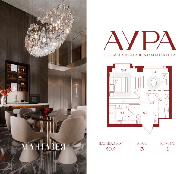 1-комнатная квартира площадью 50,9 м2. Высота потолков 3,16 м. Этаж 12 из 41. Вид из окон - на две стороны света. О проекте АУРА новая премиальная доминанта Москвы в 10 минутах от Садового кольца. Проект состоит из 42-этажной Бронзовой башни и 41-этажной Серебряной. Рядом набережная Москвы-реки, Даниловский рынок, музеи и галереи, престижные школы и вузы. Двор и благоустройство Приватная территория АУРЫ состоит из нескольких функциональных зон для тихого отдыха, работы и активного времяпровождения на свежем воздухе. На нижнем уровне расположены детские и спортивные площадки, скалодром и крытый павильон для подвижных игр. Выше — амфитеатр для отдыха и вечерних променадов, уличный коворкинг с мебелью и лаунж-зоны с лежаками у воды. На крыше — тихий уголок для занятий йогой, встречи рассветов и наслаждения закатами. По всему двору проложены пешеходные дорожки с подогревом в зимний сезон. Придомовую территорию АУРЫ украсит уникальный для Москвы объект — скала из натурального камня с водопадом, которая станет новой городской достопримечательностью. Эксклюзивная инфраструктура Только для резидентов: • Бьюти-комната • Коворкинг, переговорные и акустические кабинеты • Детская игровая комната • Спортзал и студия для тренировок • Просторные колясочные • Сервисная комната • Лапомойки для домашних питомцев Инфраструктура в составе проекта: • Ресторан авторской кухни • Современная медицинская клиника • Частный детский сад • Бизнес-центр класса "А" • Коммерческие помещения, закрывающие любые потребности — супермаркет, химчистка и др. Атрибуты комфорта • Индивидуальная вентиляция квартир • Вентиляция с очисткой воздуха в общих зонах • Мультизональное центральное кондиционирование (VRF) • Горячая вода круглый год • Вода качества, сопоставимого с питьевой • Усиленная звукоизоляция квартир Входные группы • Гранд-лобби в стиле современной роскоши • Дизайнерские лобби в каждой башне • Панорамное остекление Квартиры Более 40 планировок: от уютных студий до просторных семейных лотов. Всего 916 квартир площадью от 28,1 до 148,8 м². Высота потолков от 3,16 до 6,2 м. Уникальные планировки: • Квартиры с террасами • Квартиры с окном в ванной • Квартиры с круговым остеклением • Двухуровневые пентхаусы Паркинг и келлеры Двухуровневый подземный паркинг на 563 парковочных места: • Постоянные места: 496 (в том числе 48 мест для маломобильных) • Гостевые места: 67 • Персональные кладовые и велостанция • Мойка автомобилей • Станция для подкачки шин • Зарядки для электромобилей • Зона для разгрузки крупногабаритных предметов Интеллектуальные системы • Персональный бесконтактный доступ на территорию и в здание по электронному ключу (Bluetooth/RFID) • Премиальные лифты Mitsubishi • Автоматический въезд на паркинг для резидентов по распознаванию номеров • Круглосуточное видеонаблюдение с возможностью push-уведомлений • Система датчиков для круглосуточного мониторинга • Усиленный сигнал связи — стабильный прием сотовой связи и интернета на всей территории