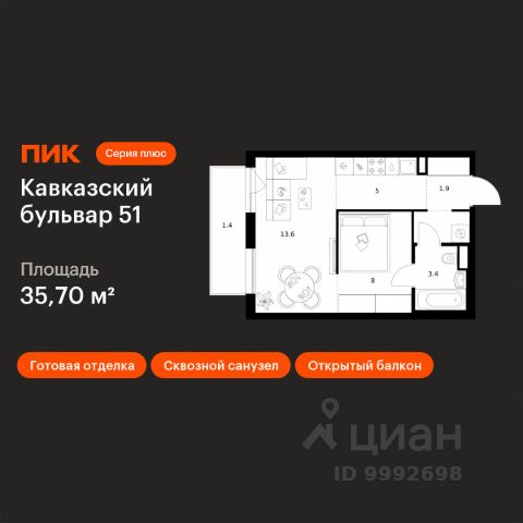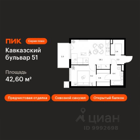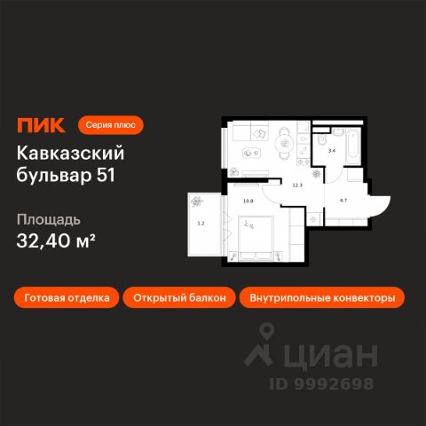 Продаётся 1-комн. квартира площадью 37 кв.м на 9 этаже 24 этажного дома (Корпус 3.5, Секция 2) проекта ПИК Кавказский бульвар 51. Светлый просторный подъезд на уровне земли, функциональная планировка, большие окна, предчистовая отделка. "Кавказский бульвар 51" — современный жилой квартал в районе Царицыно. Проект частично реализован. "Кавказский бульвар 51" находится в районе Царицыно, недалеко от одноимённого музея-заповедника. До метро "Кантемировская" — 17 минут пешком. За 20 можно дойти до станции "Чертаново". В 10 минутах на машине — МКАД, в 11 минутах — Варшавское шоссе, а в 16 минутах — ТТК. В проекте жилые дома высотой от 5 до 33 этажей, детский сад и школа. На первых этажах доступны магазины, кафе, салоны красоты и другие сервисы — чтобы купить кофе и свежий хлеб к завтраку, можно просто спуститься на лифте. В уютных дворах-парках есть места для отдыха и детские площадки. Для прогулок на свежем воздухе мы построим для жителей широкий пешеходный бульвар. В районе вокруг "Кавказского бульвара 51" есть всё для комфортной жизни: детские сады, школы, поликлиники, магазины и торговые центры. Девять минут на машине — и вы у музея-заповедника "Царицыно", где можно гулять среди исторических построек, лежать на траве под тенью деревьев или заниматься спортом на специальных площадках. Есть парки и поближе: до Аршиновского можно дойти за 8 минут, а до парка "Сосенки" — за 13 минут. Артикул 998572 (Застройщик АО "СПЕЦИАЛИЗИРОВАННЫЙ ЗАСТРОЙЩИК "ТОРГОВЫЙ ДОМ СПУТНИК") 1-комнатная квартира от застройщика в районе Царицыно в Москве.