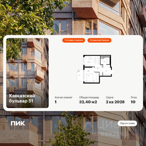 Продаётся 1-комн. квартира площадью 33,2 кв.м на 5 этаже 7 этажного дома (Корпус 3.7, Секция 4) проекта ПИК Кавказский бульвар 51. Светлый просторный подъезд на уровне земли, функциональная планировка, большие окна, предчистовая отделка. "Кавказский бульвар 51" — современный жилой квартал в районе Царицыно. Проект частично реализован. "Кавказский бульвар 51" находится в районе Царицыно, недалеко от одноимённого музея-заповедника. До метро "Кантемировская" — 17 минут пешком. За 20 можно дойти до станции "Чертаново". В 10 минутах на машине — МКАД, в 11 минутах — Варшавское шоссе, а в 16 минутах — ТТК. В проекте жилые дома высотой от 5 до 33 этажей, детский сад и школа. На первых этажах доступны магазины, кафе, салоны красоты и другие сервисы — чтобы купить кофе и свежий хлеб к завтраку, можно просто спуститься на лифте. В уютных дворах-парках есть места для отдыха и детские площадки. Для прогулок на свежем воздухе мы построим для жителей широкий пешеходный бульвар. В районе вокруг "Кавказского бульвара 51" есть всё для комфортной жизни: детские сады, школы, поликлиники, магазины и торговые центры. Девять минут на машине — и вы у музея-заповедника "Царицыно", где можно гулять среди исторических построек, лежать на траве под тенью деревьев или заниматься спортом на специальных площадках. Есть парки и поближе: до Аршиновского можно дойти за 8 минут, а до парка "Сосенки" — за 13 минут. Артикул 1009927 (Застройщик АО "СПЕЦИАЛИЗИРОВАННЫЙ ЗАСТРОЙЩИК "ТОРГОВЫЙ ДОМ СПУТНИК") 1-комнатная квартира от застройщика в районе Царицыно в Москве.