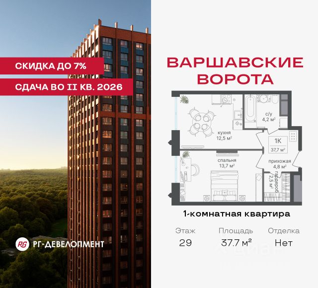 Рассрочка 0% + скидка 5%. Первый взнос 20%, второй — через 6 мес., остаток —до ввода. Продаются 1-комнатные апартаменты 47.0 кв.м. в МФК "Варшавские ворота" на 3-м этаже 30 этажного дома. МФК "Варшавские ворота" — это точка баланса между природой и городом, стилем и функциональностью, жизнью сегодня и устойчивым будущим. Коротко о важном: - 1 минута пешком от м. Аннино; - Удобные выезды на Варшавское шоссе и МКАД; - Высота потолков 2,7 - 3 м; - Закрытый двор-парк; - Школы и детские сады в 10-15 минутах пешком от дома; - Технические лоджии для размещения кондиционеров; - Подземный паркинг; - РГ-Девелопмент — ТОП-20 крупнейших застройщиков Москвы. Проект сочетает в себе современную архитектуру и продуманное благоустройство с уникальным природным окружением. Всего в нескольких минутах от дома — девять парков, каскад прудов и крупнейшие лесопарковые зоны Москвы, создающие ощущение жизни в зеленом оазисе посреди мегаполиса. Архитектурная концепция - стиль Чикаго в Москве. Фасады облицованы вентфасадами под клинкерную плитку. Фасады подчеркивают строгие линии и современный стиль, а входные группы разработаны московским бюро Синтаксис. Вестибюли оформлены с применением керамогранита, декоративной штукатурки и гипсовых панелей, детали из латуни добавляют изысканности. Проект находится в 1 минуте пешком от метро "Аннино", в 12 минутах от станции "Улица Академика Янгеля" и рядом с МЦД-2 "Красный Строитель". Для автомобилистов предусмотрен прямой выезд на Варшавское шоссе и два съезда на МКАД, что позволяет быстро добираться в любую часть города. Среди планировочных решений представлены разнообразные форматы: от функциональных студий до просторных 4-комнатных квартир и апартаментов. Высокие потолки усиливают ощущение простора, а продуманные планировки включают мастер-спальни, гардеробные, объединённые кухни-гостиные и несколько санузлов. Центральное пространство комплекса — закрытый двор без машин. Он разделён на функциональные зоны: детские игровые комплексы, спортивные площадки и уютные места для тихого отдыха. На первых этажах разместятся магазины, кафе и сервисы, что позволит решать повседневные задачи, не покидая территорию комплекса. Для семей с детьми предусмотрен частный детский сад на 50 мест. Подземная парковка и кладовые обеспечат удобство хранения и безопасность автомобилей. Комплекс окружён девятью парками и лесопарками, каждый из которых обладает своей атмосферой. Выйти на пробежку в Аннинском лесопарке, насладиться прогулками по аллеям в Битцевском лесу, спланировать пикник или велопрогулку в Покровском парке, любоваться каскадом Кировоградских прудов. Всего в двух станциях — музей-заповедник "Царицыно" с дворцами, фонтанами и живописными пейзажами. Здесь каждый житель найдёт своё любимое место для отдыха. Южное Чертаново - район развитой инфраструктурой, где сочетаются городские удобства и природное окружение. В шаговой доступности находятся школы, детские сады, спортивные комплексы и торговые цент 1-комнатная квартира от застройщика в районе Чертаново Южное в Москве.