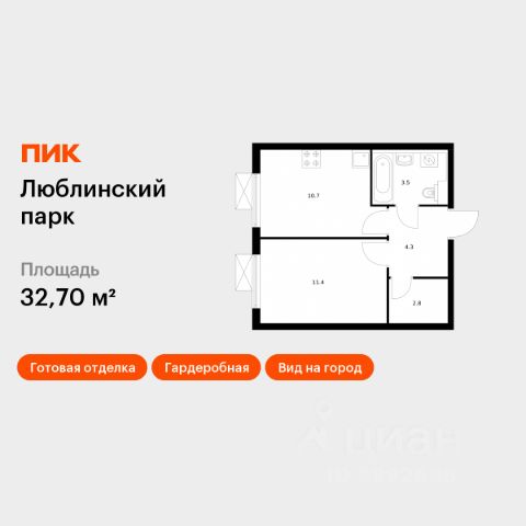 Продаётся 1-комн. квартира площадью 41,4 кв.м на 17 этаже 33 этажного дома (Корпус 14.1, Секция 1) проекта ПИК Люблинский парк. Светлый просторный подъезд на уровне земли, функциональная планировка, большие окна, c отделкой. Жилой квартал "Люблинский парк" расположен на юго-востоке Москвы, в шаговой доступности от станции "Братиславская". На метро до центра ехать всего 30 минут. Также недалеко станция МЦД "Перерва", от которой можно уехать в Москву или в область. В проекте 54 жилых корпуса, три школы, семь детских садов, поликлиника. В районе есть все условия для комфортной жизни: торговые центры, школы, детские сады, поликлиники и спортивные центры. Рядом находятся усадьба Люблино, скверы и парки. Различные магазины, кафе и другие сервисы откроются на первых этажах, а на подземных будут паркинги с удобной навигацией. В зелёных дворах без автомобилей мы построим детские площадки и места для отдыха. А ещё "Люблинский парк" стал третьим проектом ПИК с большой игровой площадкой ПлейХаб, которая уже открылась между 1-м и 2-м блоками на безопасном расстоянии от дороги. Новое детское пространство "Остров" воплощает идею бесконечной игры. Ландшафт площадки — это ещё и игровой элемент, который помогает детям придумывать множество самых разнообразных игр. Здесь интересно детям разного возраста — от малышей до подростков. Жителям квартала Люблинский парк и их друзьям доступен проект ПИКСПОРТ — это бесплатные занятия с профессиональными тренерами. Тренировки по разным направлениям, например йога, фитнес, бег, воркаут, проходят как в группе на улице рядом с домом, так и онлайн. Артикул 896083 (Застройщик ООО СЗ "Люблино Девелопмент")