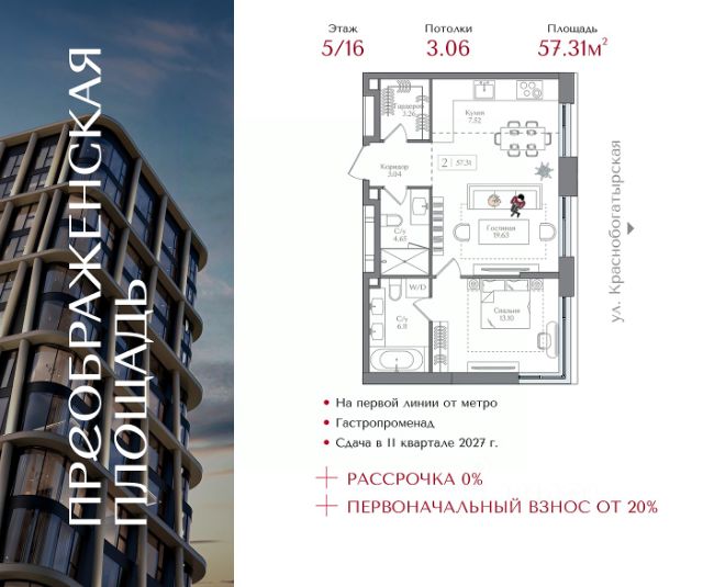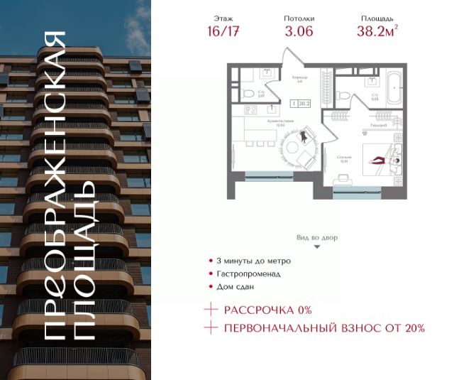 Продается 1-комнатная квартира в ЖК "НАЗАРЕ'" Общая площадь - 43.40 Тип дома - монолитный Этаж - 6 Год сдачи - 2028 Предлагается квартира площадью 43.40 кв. м в новом современном квартале на востоке Москвы, прямо у станций метро и МЦК "Бульвар Рокоссовского". Квартира располагается в корпусе 1 на 6 этаже комплекса бизнес-класса "НАЗАРЕ'". Стоимость указана с учетом скидки 10%, ваша выгода составит 2 242 478 рублей! Полная стоимость квартиры без скидки 22 424 780 рублей. Великолепная транспортная доступность: • 2 минуты ходьбы до метро и МЦК "Бульвар Рокоссовского"; • 3 минуты на авто - удобный выезд на СВХ (МСД); • 10 минут на авто до национального парка "Лосиный остров"; • 10 минут на авто до "Измайловского парка"; • 15 минут до авто до парка "Сокольники"; • 15 минут занимает выезд на ТТК, • 18 минут на авто до Садового кольца. Индивидуальная архитектура в современном стиле: • шесть башен переменной высотности от 24 до 43 этажей, в том числе одна высотная 143-метровая доминанта, которая станет достопримечательностью востока Москвы; • авторы архитектурной концепции - знаменитое бюро СПИЧ (среди их работ - башня "Федерация", новое здание Третьяковской галереи, реконструкция БСА "Лужники" и др.); • торгово-развлекательный комплекс с фитнес-центром, детской игровой комнатой и открытыми террасами прямо возле квартала; • дизайнерские лобби от бюро ABOVE ARCHITECTURE с панорамными окнами, интерьерами в теплой цветовой гамме и мягкой зоной ожидания располагаются в каждой башне; • корпуса расположены так, чтобы из окон открывались потрясающие виды на закаты и рассветы, зеленые панорамы или огни мегаполиса; Особенности расположения "НАЗАРЕ'" находится максимально близко к метро, и в то же время проект вписан в уже существующую инфраструктуру зеленого столичного района Богородское. Это обеспечивает быстрый доступ ко всем нужным объектам инфраструктуры (детские сады, школы, медцентры, магазины, салоны красоты, фитнес-клубы, футбольные поля, спортивные школы), а также к живописным зеленым зонам - национальному парку "Лосиный остров", парку "Сокольники", Черкизовскому детскому парку, Измайловскому лесопарку с усадьбой Измайлово. Собственная инфраструктура и благоустройство Шесть башен квартала будут объединены цокольным этажом, в который можно попасть как с улицы, так и со стороны лобби. Здесь разместятся необходимые для комфортной повседневной жизни кофейни, супермаркет, рестораны, магазины и многое другое. В комплексе предусмотрен вместительный двухуровневый подземный паркинг с келлерами для хранения сезонных вещей. Во дворе комплекса "НАЗАРЕ'" будут места как для спокойного отдыха и работы, так и для игр и спорта. Здесь организованы игровые площадки для детей всех возврастов, места для стритбола и тенниса, а также зона с природным ландшафтом и коворкинг с экологичной деревянной мебелью.
