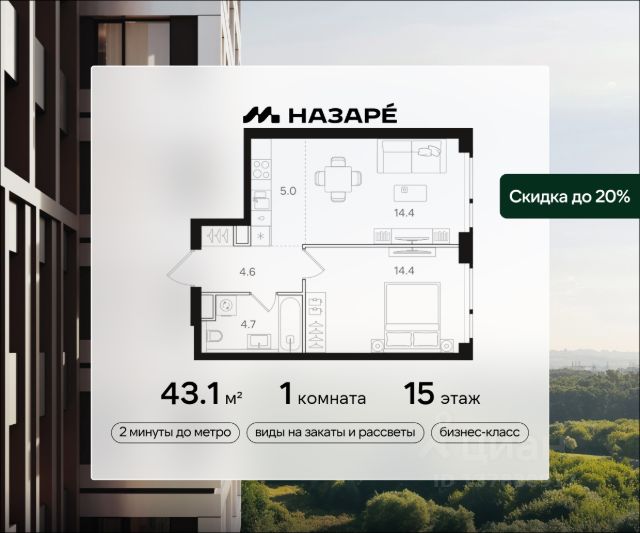 Предлагается квартира площадью 43.10 кв. м в новом современном квартале на востоке Москвы, прямо у станций метро и МЦК "Бульвар Рокоссовского". Квартира располагается в корпусе 1 на 15 этаже комплекса бизнес-класса "НАЗАРЕ'".