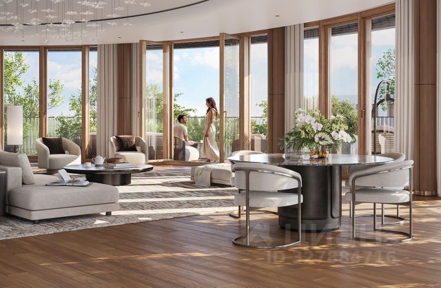 По-настоящему трофейные объекты появляются на рынке крайне редко. Эта многоуровневая городская резиденция с беспрецедентными панорамами — один из тех редких случаев. Спроектированный в духе загородной виллы, пентхаус воплощает редкое для городской недвижимости сочетание масштаба, архитектуры и абсолютной приватности. Пространство раскрывается через выразительную вертикальную композицию: двухсветную гостиную с дровяным камином и панорамным остеклением во всю высоту, внутреннюю галерею второго уровня и собственный лифт, соединяющий все этажи резиденции. Приватные террасы становятся естественным продолжением жилого пространства, открывая одну из самых впечатляющих панорам Москвы — с видом на Москву-реку, Живописный мост, зелёный массив Серебряного бора и огни делового центра столицы. Архитектура резиденции выстроена по принципу частного городского особняка и занимает четыре уровня (2225 этажи). Все этажи объединены внутренней лестницей и собственным лифтом, формируя редкий для Москвы формат вертикального дома, где пространство разворачивается не только по площади, но и по высоте. Сервисный уровень (22 этаж) включает просторную прихожую с гардеробной 17 м², уютную гостиную 35 м², постирочную 18 м², две гостевые мастер-спальни площадью 16 и 15 м², каждая с собственным санузлом, а также лифтовой холл и гостевой санузел. Парадный уровень (23 этаж) становится сердцем резиденции: впечатляющая гостиная 70 м² со вторым светом и дровяным камином, панорамное остекление и выход на видовую террасу 12 м², кухня-столовая 30 м², а также просторный мастер-сьют около 130 м² с ванной комнатой и гардеробной. Клубный уровень (24 этаж) создан для отдыха и камерного досуга: оборудованная винная комната 12 м², домашний кинотеатр около 50 м² и санузел формируют атмосферу частного клуба внутри резиденции. Верхний панорамный SPA-уровень (25 этаж) полностью посвящён отдыху. Здесь расположен собственный SPA-комплекс с финской сауной, бассейном и комнатой отдыха около 50 м², а также просторная терраса с барбекю-зоной 65 м², откуда открываются захватывающие виды на реку, Живописный мост и зелёные просторы Серебряного бора. Такое многоуровневое решение формирует редкий для Москвы сценарий жизни — частную резиденцию с масштабом загородного дома, расположенную на высоте над городом. Локация сочетает экологичность и удобную транспортную доступность: быстрый выезд на проспект Маршала Жукова позволяет за 10 минут добраться до ТТК, за 20 минут — до Кремля и за 15 минут — до МКАД. Резиденции подобного масштаба и архитектуры формируют отдельную категорию рынка — трофейную недвижимость, которая появляется в продаже крайне редко.