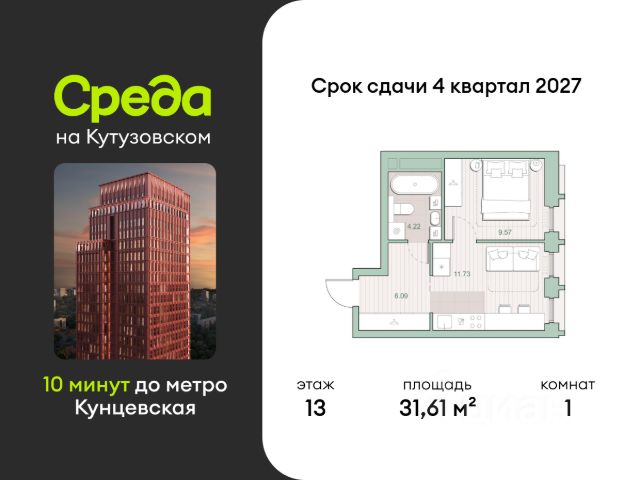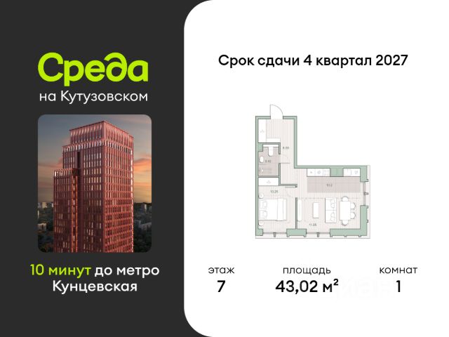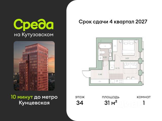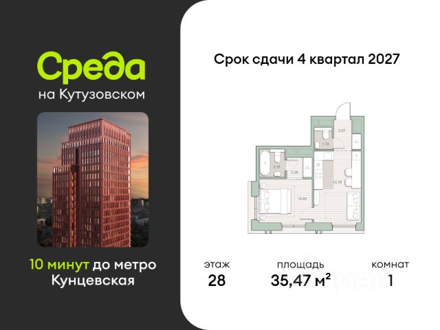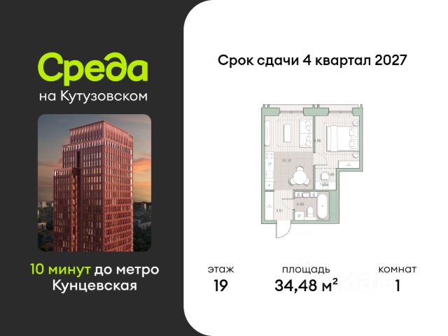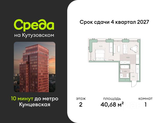 В жилом кластере Родина Парк рядом с природным заказником Долина реки Сетунь продаётся 1-комнатная квартира. Продуманная европланировка, которую легко зонировать под ваши запросы. Потолки от 3,1 м. "Родина Парк" — премиальный семейный кластер с образовательным медиакластером, строящийся на западе Москвы в окружении природного заповедника "Долина реки Сетуни". • Скидки недели на избранный пул лотов • Рассрочка 0% на выгодных условиях до 2 лет • Семейная ипотека, подбор комбо-вариантов ипотечных программ прямо в офисе продаж • Скидки 8% при 100% оплате или ипотеке. ЛОКАЦИЯ: 8 минут пешком до станции БКЛ "Давыдково". 12 минут на автомобиле до Нового Арбата. Удобные выезды на Кутузовский проспект, Аминьевское шоссе. ИНФРАСТРУКТУРА И СЕРВИСЫ ДЛЯ ЖИТЕЛЕЙ - Уникальная экосистема для развития, здоровья и творчества на территории 3,5 Га: - Первый в России образовательный медиакластер (с участием Русской медиагруппы) для творческого развития детей и взрослых с возможностью получить востребованную профессию в сфере шоу-бизнеса. - Инфраструктура и сервисы для семей с детьми на территории жилого кластера (частный детский сад, детские игровые пространства, творческие студии для занятий музыкой и танцами, безопасная и комфортная среда для детей и родителей), событийно-культурная площадка для проведения семейного досуга); - Здоровая среда (биохакинг-центр, фитнес-зал и спортивная инфраструктура во дворе, медитационные пространства, инженерные решения для освещения, свежего воздуха и очистки воды, сервисы красоты и поддержания активного долголетия); - Сервисы заботы (инфраструктура комфорта - подземный паркинг, кладовые, колясочные, консьерж- сервис, умный дом, мобильное приложение, профессиональная управляющая компания, сервисы охраны и обеспечение абсолютной безопасности) - Комьюнити резидентов (социальные пространства для дружеского и делового общения - летний атриум с уличным кинотеатром, зоны отдыха, кафе и рестораны, комьюнити-сервис с культурно- событийной программой в медиакластере); - Модуль благосостояния (комфортные пространства для работы и саморазвития - коворкинги и переговорные). ИНФРАСТРУКТУРА РАЙОНА: Насыщенная образовательная среда: филиалы МГИМО, МГУ, МГТУ, Сколково. Топовые школы: 6 лучших частных школ Москвы и области (Forbes) в 10 минутах езды. Природное окружение для пеших прогулок, спорта и отдыха. "Родина Парк" — это место, где растут и дети, и ваши возможности. Экосистема, где всё подчинено развитию — физически, профессионально, творчески.