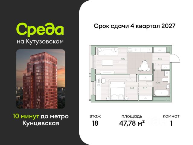 В жилом кластере Родина Парк рядом с природным заказником Долина реки Сетунь продаётся 1-комнатная квартира. Продуманная европланировка, которую легко зонировать под ваши запросы. Потолки от 3,1 м. "Родина Парк" — премиальный семейный кластер с образовательным медиакластером, строящийся на западе Москвы в окружении природного заповедника "Долина реки Сетуни". • Скидки недели на избранный пул лотов • Рассрочка 0% на выгодных условиях до 2 лет • Семейная ипотека, подбор комбо-вариантов ипотечных программ прямо в офисе продаж • Скидки 8% при 100% оплате или ипотеке. ЛОКАЦИЯ: 8 минут пешком до станции БКЛ "Давыдково". 12 минут на автомобиле до Нового Арбата. Удобные выезды на Кутузовский проспект, Аминьевское шоссе. ИНФРАСТРУКТУРА И СЕРВИСЫ ДЛЯ ЖИТЕЛЕЙ - Уникальная экосистема для развития, здоровья и творчества на территории 3,5 Га: - Первый в России образовательный медиакластер (с участием Русской медиагруппы) для творческого развития детей и взрослых с возможностью получить востребованную профессию в сфере шоу-бизнеса. - Инфраструктура и сервисы для семей с детьми на территории жилого кластера (частный детский сад, детские игровые пространства, творческие студии для занятий музыкой и танцами, безопасная и комфортная среда для детей и родителей), событийно-культурная площадка для проведения семейного досуга); - Здоровая среда (биохакинг-центр, фитнес-зал и спортивная инфраструктура во дворе, медитационные пространства, инженерные решения для освещения, свежего воздуха и очистки воды, сервисы красоты и поддержания активного долголетия); - Сервисы заботы (инфраструктура комфорта - подземный паркинг, кладовые, колясочные, консьерж- сервис, умный дом, мобильное приложение, профессиональная управляющая компания, сервисы охраны и обеспечение абсолютной безопасности) - Комьюнити резидентов (социальные пространства для дружеского и делового общения - летний атриум с уличным кинотеатром, зоны отдыха, кафе и рестораны, комьюнити-сервис с культурно- событийной программой в медиакластере); - Модуль благосостояния (комфортные пространства для работы и саморазвития - коворкинги и переговорные). ИНФРАСТРУКТУРА РАЙОНА: Насыщенная образовательная среда: филиалы МГИМО, МГУ, МГТУ, Сколково. Топовые школы: 6 лучших частных школ Москвы и области (Forbes) в 10 минутах езды. Природное окружение для пеших прогулок, спорта и отдыха. "Родина Парк" — это место, где растут и дети, и ваши возможности. Экосистема, где всё подчинено развитию — физически, профессионально, творчески.