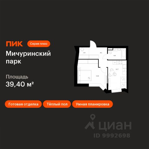 Продаётся 1-комн. квартира площадью 36,2 кв.м на 8 этаже 32 этажного дома (Корпус 4.1, Секция 1) проекта ПИК Мичуринский парк. Светлый просторный подъезд на уровне земли, функциональная планировка, большие окна, c отделкой. "Мичуринский парк" расположен на западе Москвы, в районе Очаково-Матвеевское, в 7 минутах пешком от метро "Озёрная". Архитектурную концепцию корпусов 4.4 и 4.5 разработала российская студия KK ARCHSTUDIO. У каждого корпуса свой характер — его формируют уникальная форма зданий и пластика фасада. Динамичные складки эркеров образуют характерный геометрический рисунок, который поддерживают и дополняют архитектурные детали. В корпусах 4.4 и 4.5 открытые балконы разнообразных форм: прямоугольные, фигурные. Все балконы выходят в тихий внутренний двор-парк. В эркерной части обоих корпусов предусмотрены лоджии. У подъездов будет два выхода: на улицу и во двор-парк. В наших дворах мы установим столы и лавочки со встроенными зарядными устройствами. Не нужно будет возвращаться домой, чтобы зарядить смартфон или ноутбук: можно весь день работать на свежем воздухе. В лобби "Мичуринского парка" будет удобная зона ожидания, где можно встретить друзей, курьера или дождаться такси, а также гостевая туалетная комната со столиком для пеленания. На территории проекта предусмотрен подземный паркинг и кладовые с надежной системой вентиляции, пожаротушения и системой круглосуточного видеонаблюдения. Собственная инфраструктура проекта включает два детских сада и две школы. Также по соседству с жилым комплексом будет построен многофункциональный торгово-офисный комплекс Lakes. Вдоль всего "Мичуринского парка" будут проходить несколько пешеходных бульваров с местами для отдыха. Рядом с проектом несколько зелёных зон, которые прекрасно подойдут для отдыха и спорта на свежем воздухе. Жители "Мичуринского парка" смогут выбирать, куда отправиться на прогулку: в пешей доступности Очаковский парк, парк Школьников и парк Олимпийской деревни, а на автомобиле можно быстро добраться до Тропарёвского лесопарка и Мещерского парка. Вблизи "Мичуринского парка" расположены ведущие вузы: МИРЭА, МГИМО, РАНХиГС, Институт радиотехники и телекоммуникационных систем и Академия ФСБ. Артикул 1054258 (Застройщик ООО "СПЕЦИАЛИЗИРОВАННЫЙ ЗАСТРОЙЩИК "ОЗЁРНАЯ 44")