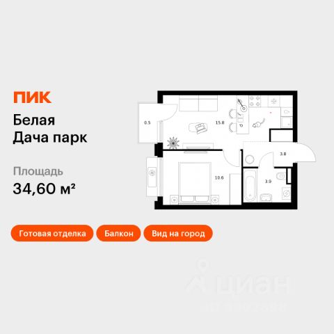 Продаётся 1-комн. квартира площадью 32,4 кв.м на 5 этаже 17 этажного дома (Корпус 22.2, Секция 10) проекта ПИК Белая Дача парк. Светлый просторный подъезд на уровне земли, функциональная планировка, большие окна, c отделкой. "Белая Дача парк" — новый проект в Московской области, в городе Котельники. Квартал расположен в 2 километрах от МКАД и в 7 минутах на автомобиле от метро "Котельники". Уже сейчас вы можете приобрести квартиры с отделкой в готовых и строящихся корпусах. На территории квартала будут построены 22 дома, две школы, поликлиники и пять детских садов. Один из центральных элементов проекта — широкий пешеходный бульвар, где мы создали пространства для спорта, прогулок и отдыха. Яркой точкой притяжения стал ПлейХаб "Ферма" — масштабная игровая зона с домом-мельницей, искусственным ручьём и развивающими элементами для детей. В 2024 году ПлейХаб стал победителем "Всероссийской премии лучших проектов создания игровой среды" и получил награду "Лучшая реализация игровой площадки среди девелоперских проектов". Рядом с кварталом много магазинов и развлекательных центров: "МЕГА Белая дача" и гипермаркет "Глобус". До Люберецких карьеров можно добраться на машине за 9 минут, а до парка "Кузьминки" — за полчаса. Артикул 1056424 (Застройщик АО "СЗ "Новый Горизонт")