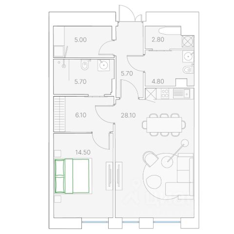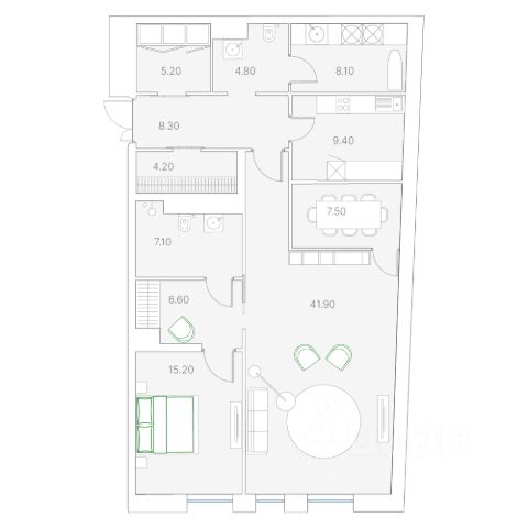 Квартира с одной спальной комнатой, обращённая окнами в зелёный благоустроенный двор-сад. К кухне-гостиной, которую лучше расположить сразу у входа, примыкает балкон, откуда особенно приятно любоваться оригинальным придомовым ландшафтом с вечерней подсветкой. "Лаврушинский" - бескомпромиссный дом с лучшими видами на Кремль. Благодаря расположению всего в одном километре от Кремля, своей высоте и малоэтажной окружающей застройке, из квартир открываются поразительные прямые виды на главные достопримечательности центра Москвы, включая храм Христа Спасителя и собор Василия Блаженного. Расположение в глубине квартала, посередине парка, дает удивительное для центра ощущение тишины и простора. На закрытой территории находится самый большой на элитном рынке собственный ландшафтный парк площадью 1,4 га с фонтаном, ручьём, зонами для воркаута и тихого отдыха. KIDS LAB: развивающая детская площадка на улице и игровая комната в помещении. FIT LAB: фитнес-клуб с 25-метровым бассейном, beauty room, доступные только для жителей. В проекте уникальный выбор квартир с просторными балконами, пентхаусов с террасами, бассейнами и каминами, максимальными видовыми характеристиками, а также роскошных вилл. Всего - 153 квартиры и 101 продуманное планировочное решение. Высота потолков составляет от 3,5 до 8,25 м. В доме предусмотрен 2х-уровневый паркинг на 279 машино-места. В доме предусмотрен полный комплекс систем комфорта, включающий приточно-вытяжную вентиляцию с тонкой фильтрацией с принципом забора воздуха с высоты 50 метров для повышения продолжительности жизни, отдельный сервисный лифт для обслуживающего персонала и другие современные системы.