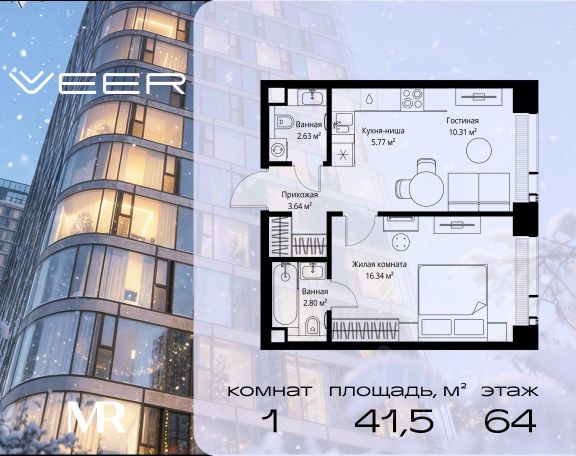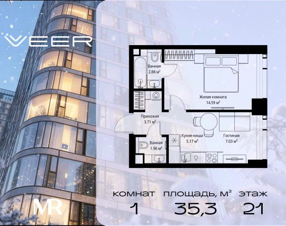 Старт продаж новой очереди! Продаётся 1-комнатная квартира общей площадью 32.97 м² без отделки в ЖК VEER на 2-м этаже 25 этажного дома. VEER.2 — вторая очередь футуристичного квартала бизнес-класса VEER. Это новая экосистема в престижном Западном округе Москвы, поражающая масштабностью внутренней инфраструктуры. ЖК находится всего в 5 минутах от Кутузовского проспекта и в 15 минутах от Сколково. Ансамбль из четырех стеклянных башен с доминантой в 237 метров разработан по принципу современного урбанизма и выражен в лаконичных объемах — параллелепипедах со сглаженными углами, которые придают зданиям утонченный вид. Расположение и транспортная доступность: • Образовательный комплекс в составе топовой школы, состоящий из двух зданий: основное на 1500 школьных и 450 дошкольных мест, отдельное здание детского сада на 300 мест. • Парк "Долина реки Сетунь" площадью более 700 гектаров • Рядом МГУ, МГИМО, РАНХиГС и Академия ФСБ • 15 минут по Кутузовскому проспекту до ужина в центре с видом на Москву-реку • 18 минут пешком до м. "Давыдково" • Открытие новых станций метро в шаговой доступности в будущем Инфраструктура: Двор в VEER.2 — это ассиметричные холмы, каменные "лабиринты", зеленые ковры и хвойные островки с единой живой экосистемой. Здесь есть все: • Павильон умиротворения Место отдыха под навесом в спокойной части двора, окруженное деревьями. • Активная тропа Тактильная дорога из камней разного диаметра для расслабляющих прогулок. • Бизнес-гарден Оборудованное пространство для работы на свежем воздухе со столом и встроенными розетками. • Детская площадка Двухуровневая площадка "Ботаника" с песочницей, переговорной трубой и горкой "Дружба". Компания MR предлагает своим клиентам специальные условия приобретения квартир в рамках программ ипотечного кредитования от банков-партнеров.