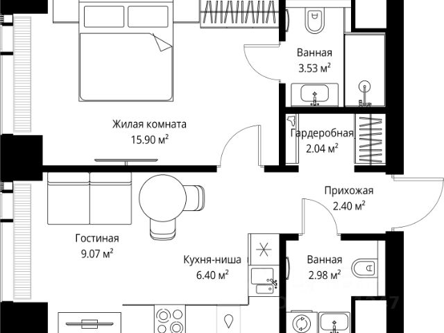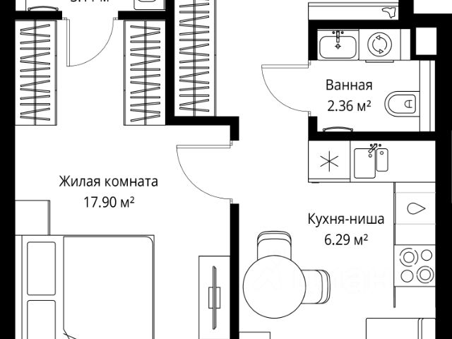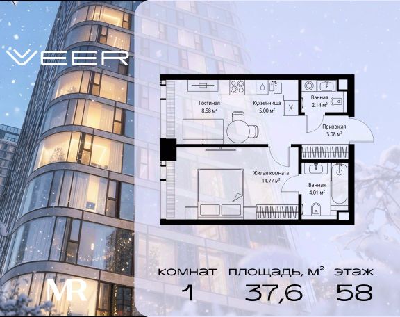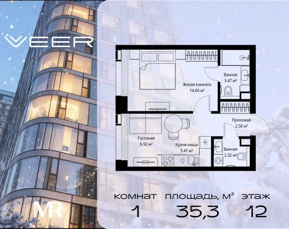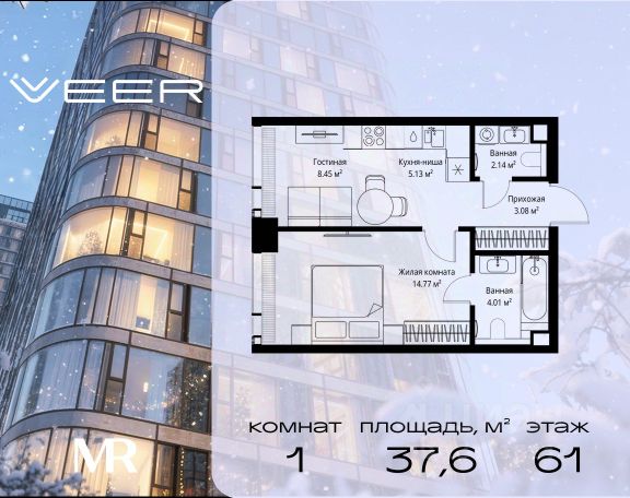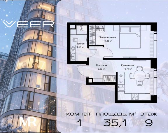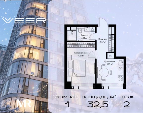 Старт продаж новой очереди! Продаётся 1-комнатная квартира общей площадью 32.97 м² без отделки в ЖК VEER на 2-м этаже 25 этажного дома. VEER.2 — вторая очередь футуристичного квартала бизнес-класса VEER. Это новая экосистема в престижном Западном округе Москвы, поражающая масштабностью внутренней инфраструктуры. ЖК находится всего в 5 минутах от Кутузовского проспекта и в 15 минутах от Сколково. Ансамбль из четырех стеклянных башен с доминантой в 237 метров разработан по принципу современного урбанизма и выражен в лаконичных объемах — параллелепипедах со сглаженными углами, которые придают зданиям утонченный вид. Расположение и транспортная доступность: • Образовательный комплекс в составе топовой школы, состоящий из двух зданий: основное на 1500 школьных и 450 дошкольных мест, отдельное здание детского сада на 300 мест. • Парк "Долина реки Сетунь" площадью более 700 гектаров • Рядом МГУ, МГИМО, РАНХиГС и Академия ФСБ • 15 минут по Кутузовскому проспекту до ужина в центре с видом на Москву-реку • 18 минут пешком до м. "Давыдково" • Открытие новых станций метро в шаговой доступности в будущем Инфраструктура: Двор в VEER.2 — это ассиметричные холмы, каменные "лабиринты", зеленые ковры и хвойные островки с единой живой экосистемой. Здесь есть все: • Павильон умиротворения Место отдыха под навесом в спокойной части двора, окруженное деревьями. • Активная тропа Тактильная дорога из камней разного диаметра для расслабляющих прогулок. • Бизнес-гарден Оборудованное пространство для работы на свежем воздухе со столом и встроенными розетками. • Детская площадка Двухуровневая площадка "Ботаника" с песочницей, переговорной трубой и горкой "Дружба". Компания MR предлагает своим клиентам специальные условия приобретения квартир в рамках программ ипотечного кредитования от банков-партнеров.