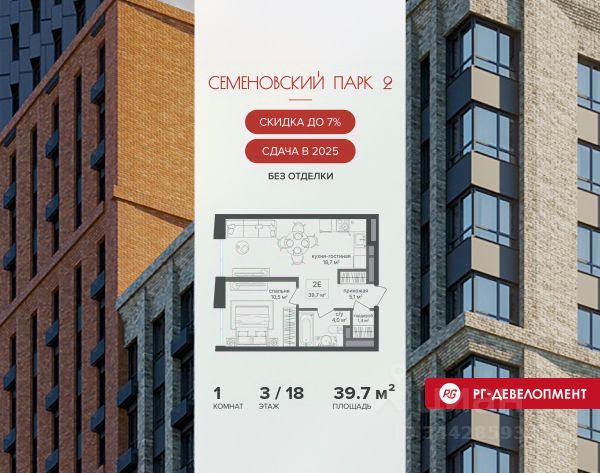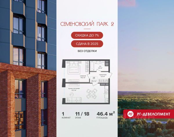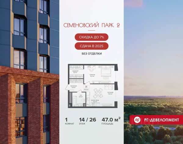 Ипотека для каждого! Полная стоимость кредита от 11,578% до 22,490%. Ставка от 0,11% в АО "Альфа-Банк" фиксируется на 1 год с даты заключения кредитного договора, далее полная стоимость кредита от 25,819% до 28,767% ставка 21,59% до окончания срока кредитования. Первоначальный взнос — от 20% от стоимости квартиры. Срок кредитования — от 3 до 30 лет. Ипотека на весь срок! Полная стоимость кредита от 23,396% до 26,058% со ставкой 14,5%! Первоначальный взнос —от 20,01% от стоимости квартиры. Срок кредитования — от 3 до 30 лет. АО "Банк ДОМ.РФ" универсальная лицензия Банка России 2312 от 19.12.2018. Скидка 7% при покупке квартиры! Цена указана с учетом максимального размера скидки. Продается 1-к квартира 47,0 кв.м. в ЖК "Семеновский парк 2" на 9-м этаже 26 этажного дома. Компания "РГ-Девелопмент" предоставляет скидки на квартиры в жилом комплексе. Акция действительна с 12.09.24 г. до 30.11.25г. включительно. Чтобы воспользоваться предложением, необходимо подписать договор на приобретение недвижимости до 30.11.25г., включительно. Прямая продажа от застройщика! Квартиры без отделки. Срок сдачи корпуса - 4 кв. 2025 г. ЖК "Семеновский парк 2" - это идеальное место для того, чтобы стать вашим домом. Проект расположен в исторической части Москвы вблизи Измайловского лесопарка, в 1 км от ЦАО. 4 станции метро отделяют вас от Красной площади и 15 минут на автомобиле - от Садового кольца. Продам 1-комнатную квартиру от застройщика рядом с метро Семеновская.