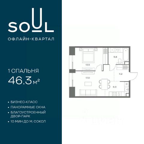 Цены указаны с условием 100% оплаты и стандартной ипотеки. Прямая продажа от застройщика! Продается 1-к. квартира номер 91 общей площадью 44.8 кв.м. на 3-м этаже 8 этажного дома, корпус UNIQUE (премиум-класс). Без отделки. Проект бизнес-класса SOUL от девелопера FORMA. До метро Сокол 10 мин пешком. Архитектура от британского бюро SimpsonHaugh. Благоустройство дворов — Gillespies и GAFA. Территория состоит из культурного парка и приватных дворов. Озеленение в эстетике лесного оазиса. Насыщенное благоустройство: прогулочные тропинки, релакс-зоны, пряный и сенсорный сады, развивающие детские площадки и воркауты. В центре проекта объект культурного наследия — общественное пространство Изофабрика, построенная в 30-х годах по проекту архитектора Георгия Гольца. Здесь будут располагаться мастерские для взрослых и детей, выставочные залы, коворкинги, образовательный центр, рестораны и кафе. Квартиры с панорамными окнами, мастер-спальнями, гардеробными, классическими балконами и лоджиями, видовыми террасами. Высота потолков от 2,9 до 3,5 м. В проекте 2 детских сада на 100 и 200 малышей. Клубная гостиная, фитнес-рум, детская игровая комната, дизайнерские лобби, подземный паркинг и келлеры. 1-комнатная квартира от застройщика рядом с метро Сокол.
