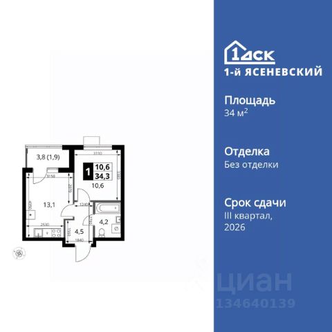 Прямая продажа от застройщика! Жилой Комплекс класса Комфорт Плюс. Продаётся 1-к квартира номер 419 общей площадью 38.2 кв.м. на 8-м этаже 18 этажного здания. Предчистовая отделка. Цена с учётом скидки. Особенности квартиры: - Квартиры рядом с метро - м. Корниловская 9 мин пешком - 63 га лесопарка за окнами - Школа c ИТ-кластером и бассейном. 2 детских сада - Организуем показ в удобное для вас время! - Линейная планировка - максимальная функциональность и удобство. - Увеличенная ширина окна/окон - больше света и визуального простора. - Можно оборудовать рабочее место - комфорт для работы и учёбы. - Просторная кухня - место для семейных ужинов и кулинарных экспериментов. - Ниша под шкаф - компактное и удобное место для вещей. - Лоджия - уютное место для отдыха и тишины. Квартира с предчистовой отделкой. Вам не придется заниматься черновыми и трудоёмкими работы, а чистовую отделку и дизайн - сделайте на свой вкус. Информация о комплексе: ЖК "1-й Ясеневский": преимущества городской инфраструктуры и природы. Пешая доступность к метро, школе с бассейном и ИТ-кластеру, а также 63 га Троицкого лесопарка под окнами. Закрытая территория с бульварами, велодорожками, кафе и дворами без машин. Фруктовые деревья и городские сады создают уникальную атмосферу. Всего в 1 км от МКАД - идеальный баланс для современной жизни. Транспортная доступность: До метро "Корниловская" - 12 минут пешком До метро "Тютчевская" - 25 минут пешком До метро "Теплый стан" - 10 минут на транспорте До метро "Ольховая" - 30 минут на общественном транспорте Личный автотранспорт: Выезд на Калужское шоссе - 500 м МКАД - 1 км Внутренняя инфраструктура: ЖК "1-й Ясеневский" - идеальное место для семей с детьми. Рядом Троицкий лесопарк для прогулок, а во дворах - современные детские площадки, разработанные с участием психологов. В шаговой доступности два детских сада и школа на 1100 мест с ИТ-кластером, бассейном и классами робототехники. Всё для счастливого детства и успешного будущего. Квартира с предчистовой отделкой - ваш дизайн без черновых работ