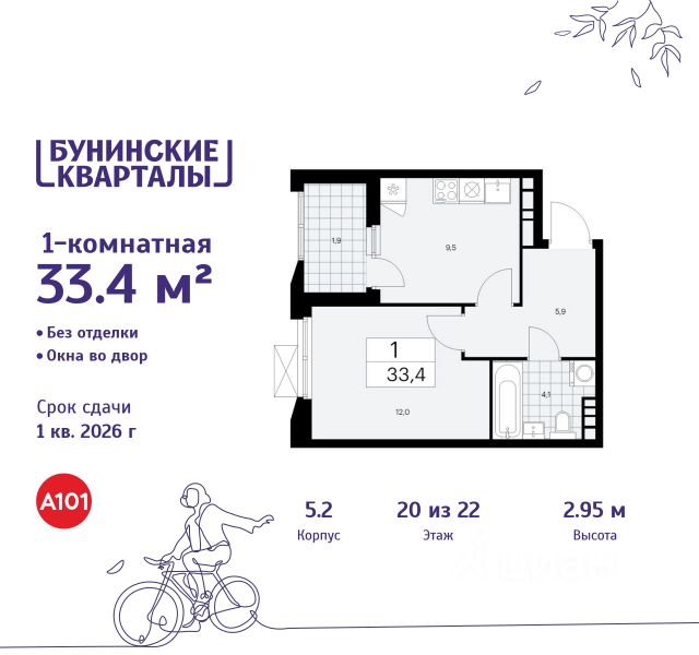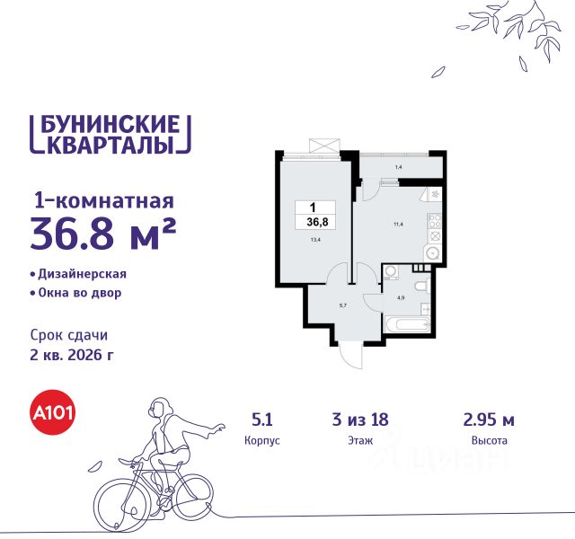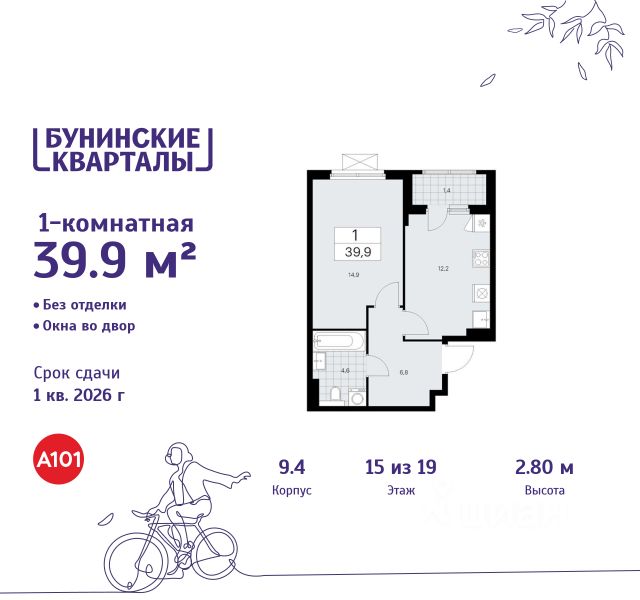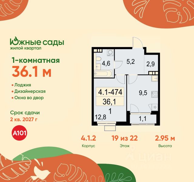 В жилом комплексе, расположенном по соседству с ландшафтным парком "Южное Бутово", продается 1-комнатная квартира площадью 46.50 кв. м. без отделки. Квартира расположена на 2 этаже 1 корпуса в жилом квартале комфорт-класса "Новые Смыслы" (ГК Unikey/Юникей). Доступная и удобная локация: - 10 минут ходьбы до станции метро "Потапово". - 25 минут ходьбы до станции метро "Бунинская аллея". - 15 минут на авто до Калужского шоссе. - 20 минут на авто до МКАД. - 30 минут на машине до аэропортов "Внуково" и "Остафьево". Продуманный архитектурный проект: - Разноуровневые секции с эстетичные башнями и контрастными цветовыми сочетаниями, напоминающими башни в Сити. - Сказочные виды из окон на современный район столицы. - Авторские планировки с потолками в 3 метра, просторными кухнями-гостиными и мастер-спальнями. - Комфортные бесплатные общественные пространства. - Подземный паркинг с прямым доступом на лифте. - Настоящий лес с живописными пейзажами и прудом прямо во дворе. Расположение Комплекс "Новые Смыслы" расположится в благоприятном районе Новой Москвы - Коммунарка. Зеленое окружение, богатая инфраструктура развивающегося района - все это сформирует особое пространство для комфортной жизни, наполненной смыслом. 10 минут на велосипеде - и вы в ландшафтном парке "Южное Бутово" или сквере у Потаповских прудов. Чуть дальше расположен Бутовский лесопарк. В окружении "Новых Смыслов" вы найдете все необходимые социальные объекты. В двух шагах от дома находится 5 школ, более десятка детских садов, секции для занятий малышей и подростков, частные клиники, супермаркеты, рестораны, студии красоты и фитнес-центры. За 12 минут на авто вы доберетесь до ледовой арены, комплекса "Спорт Станция" и спа-центра "Termoland". Внутренняя инфраструктура Для жителей "Новых Смыслов" будут созданы бесплатные общественные пространства: - Деловая гостиная с эстетичным коворкингом и переговорными. - Гостиная для души и тела, включающая фитнес-зону с тренажерами и пространства для стретчинга, йоги и медитаций. - Гостиная детства, где дети будут играть и развиваться под присмотром тьютора. - Кино-гостиная - кинотеатр на крыше одного из домов, предлагающий разнообразную программу. - Прачечная, работающая только для жильцов. Вместе с корпусами комплекса на территории запланировано строительство детского сада. На первых этажах корпусов откроются кофейни, пекарни, сервисы быта и пункты доставки. Благоустройство Чтобы отдохнуть от суеты города, достаточно выйти во двор: здесь раскинулся настоящий лес с живописными пейзажами. В тени деревьев жителей ждут пруд с мостиком и беседкой на берегу, тихие прогулочные аллеи, спортивная площадка и зоны для занятий йогой и бадминтоном на свежем воздухе. Юных жителей порадуют современные детские площадки, жукарий и специальное пространство для подвижных игр. Безопасность на территории гарантирована: двор огорожен от машин и оснащен камерами видеонаблюдения.