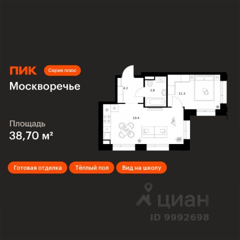 В районе Москворечье-Сабурово продается 1-комнатная квартира площадью 37.89 м². Она расположена на 3 этаже в 261 корпусе нового жилого квартала LIFE Варшавская. Площадь комнат: гостиная — 11,69 м² спальня — 11,14 м² кухня — 6,3 м² ванная — 3,36 м² В LIFE Варшавская мы создали идеальные условия для жизни молодых людей и семей с детьми, тинейджеров и спортсменов, домохозяек и бизнесменов. Жилой квартал LIFE Варшавская удачно расположен: 5 минут до станции "Варшавская" 10 минут до станции "Каширская" 18-25 минут до парка-усадьбы "Коломенское", Битцевского леса и музея-заповедника "Царицыно" Богатая инфраструктура — это визитная карточка проекта. На территории работают детский сад на 160 мест и школа на 900 мест с IT-полигоном и мультифункциональным спортивным стадионом. В квартале разместились пешеходный бульвар, игровой плейхаб "Змейка", спортивный кластер с полями для футбола и волейбола, площадка для выгула животных. На первых этажах жилых домов открыты магазины, кафе и рестораны, салоны красоты, арт-галереи, сервисы бытовых услуг, медицинские центры. Концепция жилого квартала создана ведущими архитектурными бюро. Структуры малоэтажных кварталов дополняются высотными башнями-доминантами. Такой тип застройки позволил сформировать освещенную приватную территорию.