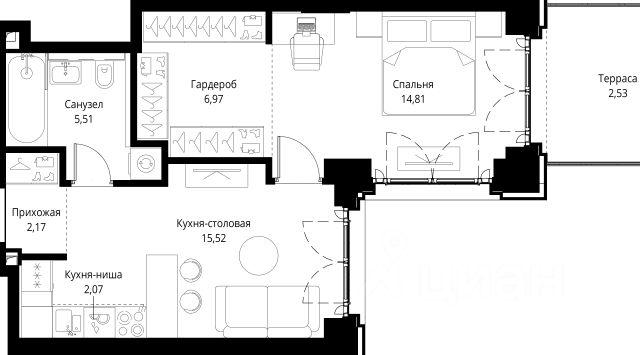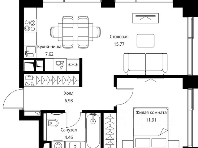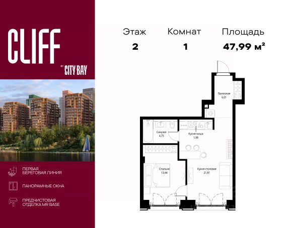 В продаже — однокомнатная квартира, общей площадью 45,87 кв. м. Квартира расположена на шестом этаже одинадцатиэтажной секции корпуса класса Адвансд в новом районе СберСити, который строит Сбер. Дом находится на второй береговой линии Москвы-реки. Отделка фасадов корпуса класса Адвансд выполнена из природного камня, глазурованной плитки и алюминия. Дом возводится по технологии монолитного строительства. В квартире проведены работы по улучшению шумоизоляции, установлены двухкамерные стеклопакеты с низкоэмиссионными стёклами, минимизирующими теплопотери. Высота окон — от 3 до 3,25 м. Квартира сдаётся без отделки. Высота потолков — от 3,3 до 3,5 м. В доме расположены: • уютное лобби, • лапомойка, • общественная терраса, • коворкинг для жителей, • собственная спортивная студия, • колясочная и велосипедная комната на первом этаже, • детская игровая комната, • подземный паркинг. СберСити — это новый жилой и деловой район на западе Москвы, в одном из самых экологически чистых и престижных мест столицы. Это первая в России и крупнейшая в мире инновационная городская среда, созданная по международным стандартам зелёного проектирования. Здесь внедряются решения в области энергоснабжения, вакуумного мусороудаления, тестирования зелёных технологий, а в дальнейшем — системы искусственного интеллекта для управления домами и городской инфраструктурой. Строительство проекта началось в 2021 году, заселение первых корпусов — с лета 2024-го. Общая площадь территории — 461 га, из них более 2,5 млн кв. м жилья и около 833 тыс. кв. м офисных пространств. Будет построено 7 школ, 13 детских садов и 2 поликлиники. В СберСити будут жить 65 тыс. человек и работать 70 тыс. Развитием территории занимается АО "Рублёво-Архангельское", входящее в группу Сбер. СберСити — место, где хочется жить, работать и растить детей. Переезжайте в СберСити! 1-комнатная квартира от застройщика рядом с метро Волоколамская.