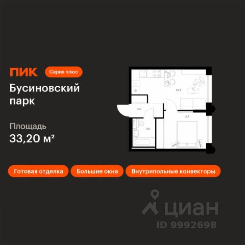 Продаётся 1-комн. квартира площадью 33,8 кв.м на 13 этаже 24 этажного дома (Корпус 22.2, Секция 2) проекта ПИК Бусиновский парк. Светлый просторный подъезд на уровне земли, функциональная планировка, большие окна, c отделкой.
