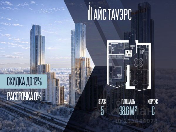 Выгода 12%, беспроцентная рассрочка от застройщика. Продается 1-комнатная квартира на 11 этаже, 40.6 кв.м. площади в жилом комплексе "Айс Тауэрс", который расположен в Западном административном округе Москвы. Архитектура комплекса отличается панорамным остеклением фасадов. Квартиры продаются с опциональной отделкой white box. В комплексе установлены системы видеонаблюдения, климат-контроля (бризеры) и элементы системы "умный дом". Территория и расположение На придомовой закрытой территории обустроены детские площадки, зоны для воркаута и места для отдыха. Комплекс граничит с особо охраняемой природной зоной, что обеспечивает доступ к прогулочным маршрутам. Инфраструктура комплекса • Комьюнити-центр с универсальными залами, коворкингом и библиотекой. • Помещения для детских занятий и мастер-классов. • Предусмотрены кабинеты для приема специалистов (стилистов, массажистов). В комплексе работают круглосуточная консьерж-служба и служба доставки (внутри комплекса). Доступны услуги парковки (valet) и помощи с багажом (беллмены). Для повседневного удобства предусмотрены: • Колясочные и велосипедные хранилища. • Душевые для домашних животных и груминг. • Мобильное приложение для управления сервисами.