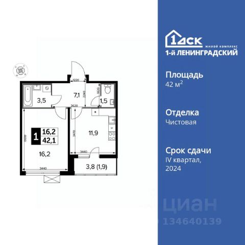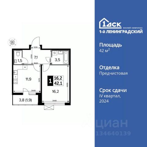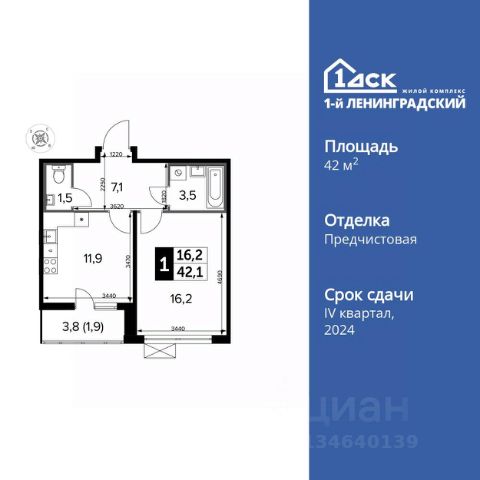 УСПЕЙ ПО СЕМЕЙНОЙ ИПОТЕКЕ БЕЗ НАЦЕНКИ! От 31 600 рублей в месяц! Прямая продажа от застройщика! Жилой Комплекс класса Комфорт Плюс. Продаётся 1-к квартира номер 370 общей площадью 42.1 кв.м. на 12-м этаже 13 этажного здания. Чистовая отделка. Цена с учётом скидки. Особенности квартиры: - Просторная спальня, в которой можно разместить большую кровать. - Линейная планировка - максимальная функциональность и удобство. - Раздельный санузел - больше удобства для всех членов семьи. - Лоджия - уютное место для отдыха и тишины. - Панорамное остекление лоджии - открывает вид на окружающий мир. Информация о комплексе: В концепции благоустройства гармонично сочетаются черты двух городов. Территорию комплекса пронизали стрелы прогулочных бульваров, уменьшенные копии петербургских проспектов. Стремимся, чтобы каждый элемент ЖК был продуман, наполнен комфортом и заботой для всех жителей, включая четырехлапых. В каждой квартире подключен базовый пакет Умная квартира забудьте о беспокойстве о протечке; настройте свои сценарии управления техникой и электричеством; общайтесь с Умной квартирой голосом; Можете легко расширить базовый пакет и подключить дополнительные опции и устройства, чтобы из любой точки мира управляй работой бытовых приборов и систем, например: включайте разогрев ужина; регулируйте яркость яркость света; регулируйте громкость музыки; настраивайте работу теплых полов. Транспортная доступность: 15 минут пешком до станции Молжаниново (Планерная), МЦД3. Всего в 7 км от МКАД по Ленинградскому шоссе, сразу после пересечения с Международным шоссе. Внутренняя инфраструктура: Для детских игр и отдыха взрослых в квартале предусмотрено множество вариантов уютных московских двориков. Детские зоны отделены от взрослых, спортивные площадки и зоны воркаута с их шумными играми вынесены за пределы дворов. В обустройстве всех зон использованы только экологичные материалы. Оборудование для игровых площадок разрабатывалось с привлечением детских психологов. Для любителей велосипедов проложены велодорожки, ведущие к живописным прудам. Если же вам нужно в магазин, аптеку, а может, просто захотелось посидеть с семьей или друзьями в кафе по соседству - все необходимое расположено на первых этажах зданий с внешней стороны комплекса.