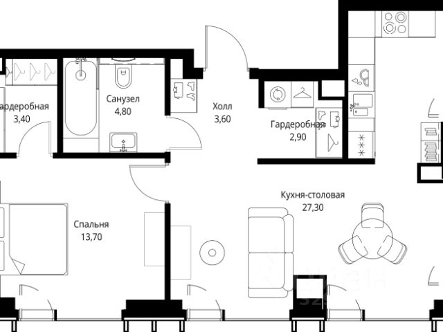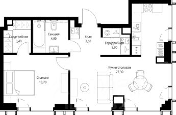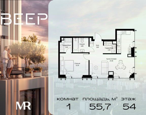 Прямая продажа от застройщика. В ЖК Сет продается 1-комнатная квартира площадью 34.42 м², расположенная в корпусе Б, на 54 этаже 59 этажного дома. Сет имеет стратегически выгодное расположение в ЗАО, в районе с большой историей и блестящим будущим: между природной зоной долины реки Сетунь и Кутузовским проспектом. В рамках возведения первой очереди предусмотрено три корпуса высотой 18, 45 и 59 этажей. На верхних этажах спроектированы общедоступные смотровые площадки с панорамным обзором на центр столицы. Преимущества проекта: • Функциональные планировочные решения • Контроль проникновения через входную дверь • Система управления освещением и температурой в квартире • Система защиты от протечек с функцией перекрытия воды • Вход в подъезд по биометрическим считывателям Face ID • Скоростные лифты • Двухуровневый подземный охраняемый паркинг на 495 машино-мест Застройка Сет включает в себя не только жилые корпуса, но и инфраструктурные объекты. Все необходимое для повседневного комфорта будет расположено в шаговой доступности: • Фитнес-Клуб с бассейном • Ведущая городская школа, детский сад и школа искусств • Центр культуры и досуга • Медицинский центр • Кафе и рестораны Расположение комплекса: Пешком: • Метро "Давыдково" - 17 минут • Парк "Долина реки Сетунь" - 3 минуты • Открытие новых станций метро в шаговой доступности в будущем Инфраструктура: Разнообразить свой день резиденты Веер смогут также проводя больше времени на свежем воздухе. Двор разделен на 4 зоны разных эмоций и действий, которые пересечены и соединены веерными прогулочными маршрутами: • Спортивная площадка устроена в глубине "Кленовой рощи" • В "Чайном домике" будет создан навес с утеплением для отдыха в любую погоду • Площадки для детей воплотятся в "Волшебный лес" с цветами, зеркалами и световым дизайном • "Центральная площадь" устроена у водного оазиса живописного пруда. На машине: • "Москва-Сити" - 15 минут • Садовое кольцо - 20 минут • ТЦ "Океания" - 8 минут • ТЦ "Времена года" - 13 минут • Сколково - 12 минут • Гребной канал - 17 минут Компания MR предлагает своим клиентам специальные условия приобретения квартир в рамках программ ипотечного кредитования от банков-партнеров. Купить 1-комнатную квартиру от застройщика в районе Можайский в Москве.