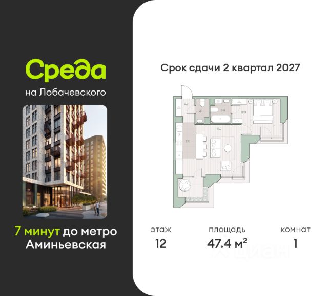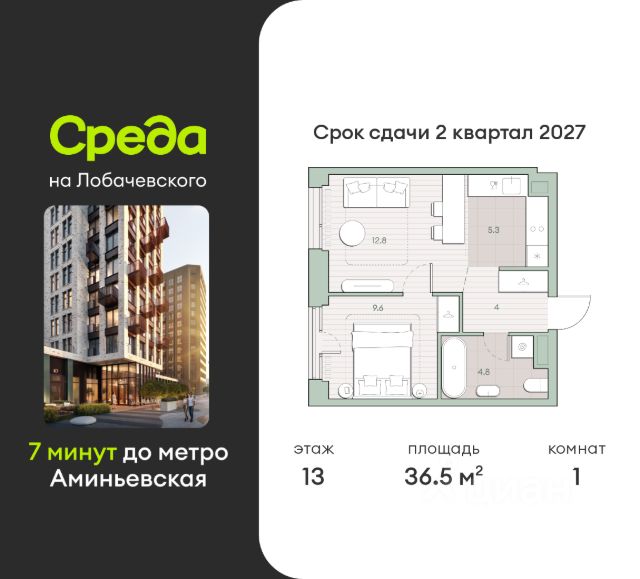 О квартире Продаётся 1-комнатная квартира общей площадью 35.3 кв.м. с отделкой white box. Квартира расположена на 9 этаже корпуса 5.2 в жилом комплексе бизнес-класса "Среда на Лобачевского" в пешей доступности от метро "Аминьевская". О жилом комплексе "Среда на Лобачевского" полностью соответствует критериям современного жилого пространства. Взяв за основу рациональный подход, мы гармонично соединили дизайн, актуальные тренды и функциональность. Продуманный современный экстерьер и функциональные планировки внутри, приватные пространства и разнообразные досуговые зоны для каждого члена семьи — все это "Среда на Лобачевского". Инфраструктура Район отлично развит и наполнен жизнью, здесь уже есть вся необходимая инфраструктура — детские сады, школы, медучреждения, торговые центры, благоустроены парки для прогулок и отдыха, удобен и легкодоступен городской транспорт. Рядом расположены учебные корпуса крупных университетов — МГУ, МГИМО и РАНХиГС. Школы и детские сады в районе занимают высокие позиции в городских рейтингах, поэтому вам не придется беспокоиться о качестве образования детей. Как и об отдыхе: поблизости расположены живописные пруды, реки и парки. Это Парк Олимпийской деревни, Парк имени 50-летия Октября, Мещерский парк и Очаковские пруды. Теперь поставить галочки в еженедельном чек-листе "спорт-прогулки-встречи с друзьями" можно, не покидая любимый район. Особенности Особое внимание в проекте уделяется созданию функциональных пространств не только внутри дома, но и за его пределами. В ландшафтном парке "Среды на Лобачевского" расположены крытые зоны для спокойного времяпровождения, места для активного отдыха и спорта, коворкинг, соседский комьюнити-центр, водные объекты. —Ландшафтный парк во дворе. —Водный сад с зонами отдыха. —Зоны коворкинга. —Дизайнерские гранд-лобби. —Бесключевой доступ. —Подземный паркинг. Продам 1-комнатную квартиру от застройщика в районе Очаково-Матвеевское в Москве.