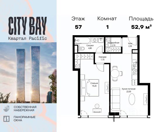 Прямая продажа от застройщика. Продаётся 1-комнатная квартира общей площадью 34 м² без отделки в ЖК City Вау, квартале Pacific, на 20-м этаже 59 этажного дома. Концепция жилого комплекса City Вау - настоящий город в городе с отлично развитой инфраструктурой и собственной благоустроенной набережной. На территории жилого комплекса расположено пять кварталов - Atlantic, Pacific, Indian, North, Cliff. Жилой квартал City Вау отличается оригинальной концепцией и выделяется среди других проектов такими характеристиками как: - Архитектура, - Виды из окон, - Природное окружение, вызывая гордость у жителей и восхищение у прохожих. Вся жизнь района Покровское-Стрешнево строится вокруг водных объектов: - Пойма реки Сходни с уникальной экосистемой, - Речка Химка и Химкинское водохранилище, - Москва-река, - Канал имени Москвы. Кругом вода, и местные с удовольствием этим пользуются. А сразу за рекой - центр водного спорта в Строгино с вейк-парком и яхт-клубами. Помимо воды, здесь очень много зелени: - Рядом Сходненский ковш памятник природы, естественный амфитеатр глубиной 40 метров; - Парк при усадьбе Братцево с фруктовым садом; - Дубовая роща "Маяк", - Алешкинский лес; - Лесопарк Покровское-Стрешнево с пляжами и бобрами. Главные транспортные артерии района: - Волоколамское шоссе, - Таганско-Краснопресненская линия метро и МЦД-2. Всего за 20 минут можно добраться до центра на машине или метро, а МЦД связывает ЖК City Вау с северными, восточными и юго-восточными районами. Компания MR предлагает своим клиентам специальные условия приобретения квартир в рамках программ ипотечного кредитования от банков-партнеров.