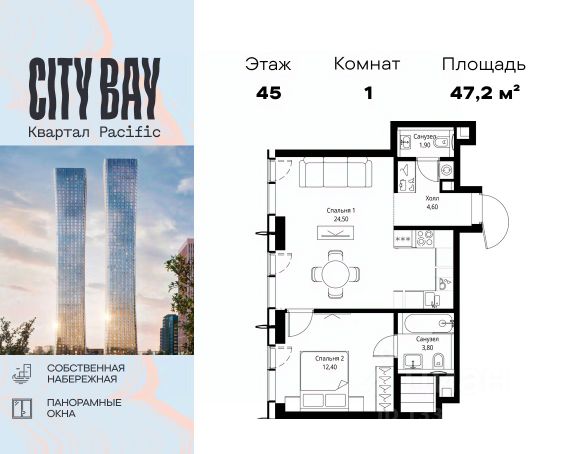 Прямая продажа от застройщика. Продаётся 1-комнатная квартира общей площадью 33.10 м² без отделки в ЖК City Вау, квартале Pacific, на 28-м этаже 59 этажного дома. Концепция жилого комплекса City Вау - настоящий город в городе с отлично развитой инфраструктурой и собственной благоустроенной набережной. На территории жилого комплекса расположено пять кварталов - Atlantic, Pacific, Indian, North, Cliff. Жилой квартал City Вау отличается оригинальной концепцией и выделяется среди других проектов такими характеристиками как: - Архитектура, - Виды из окон, - Природное окружение, вызывая гордость у жителей и восхищение у прохожих. Вся жизнь района Покровское-Стрешнево строится вокруг водных объектов: - Пойма реки Сходни с уникальной экосистемой, - Речка Химка и Химкинское водохранилище, - Москва-река, - Канал имени Москвы. Кругом вода, и местные с удовольствием этим пользуются. А сразу за рекой - центр водного спорта в Строгино с вейк-парком и яхт-клубами. Помимо воды, здесь очень много зелени: - Рядом Сходненский ковш памятник природы, естественный амфитеатр глубиной 40 метров; - Парк при усадьбе Братцево с фруктовым садом; - Дубовая роща "Маяк", - Алешкинский лес; - Лесопарк Покровское-Стрешнево с пляжами и бобрами. Главные транспортные артерии района: - Волоколамское шоссе, - Таганско-Краснопресненская линия метро и МЦД-2. Всего за 20 минут можно добраться до центра на машине или метро, а МЦД связывает ЖК City Вау с северными, восточными и юго-восточными районами. Компания MR предлагает своим клиентам специальные условия приобретения квартир в рамках программ ипотечного кредитования от банков-партнеров.