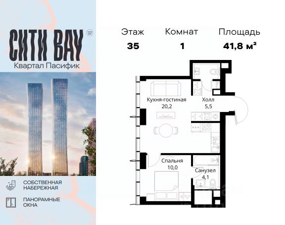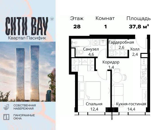 Прямая продажа от застройщика. Продаётся 1-комнатная квартира общей площадью 33.10 м² без отделки в ЖК Сити Бэй, квартале Пасифик, на 28-м этаже 59 этажного дома. Концепция жилого комплекса Сити Бэй - настоящий город в городе с отлично развитой инфраструктурой и собственной благоустроенной набережной. На территории жилого комплекса расположено пять кварталов - Атлантик, Пасифик, Индиан, Норс, Клиф. Жилой квартал Сити Бэй отличается оригинальной концепцией и выделяется среди других проектов такими характеристиками как: - Архитектура, - Виды из окон, - Природное окружение, вызывая гордость у жителей и восхищение у прохожих. Вся жизнь района Покровское-Стрешнево строится вокруг водных объектов: - Пойма реки Сходни с уникальной экосистемой, - Речка Химка и Химкинское водохранилище, - Москва-река, - Канал имени Москвы. Кругом вода, и местные с удовольствием этим пользуются. А сразу за рекой - центр водного спорта в Строгино с вейк-парком и яхт-Клубами. Помимо воды, здесь очень много зелени: - Рядом Сходненский ковш памятник природы, естественный амфитеатр глубиной 40 метров; - Парк при усадьбе Братцево с фруктовым садом; - Дубовая роща "Маяк", - Алешкинский лес; - Лесопарк Покровское-Стрешнево с пляжами и бобрами. Главные транспортные артерии района: - Волоколамское шоссе, - Таганско-Краснопресненская линия метро и МЦД-2. Всего за 20 минут можно добраться до центра на машине или метро, а МЦД связывает ЖК Сити Бэй с северными, восточными и юго-восточными районами. Компания MR предлагает своим клиентам специальные условия приобретения квартир в рамках программ ипотечного кредитования от банков-партнеров.