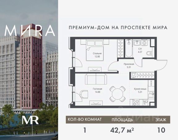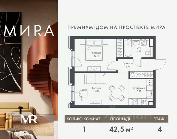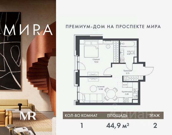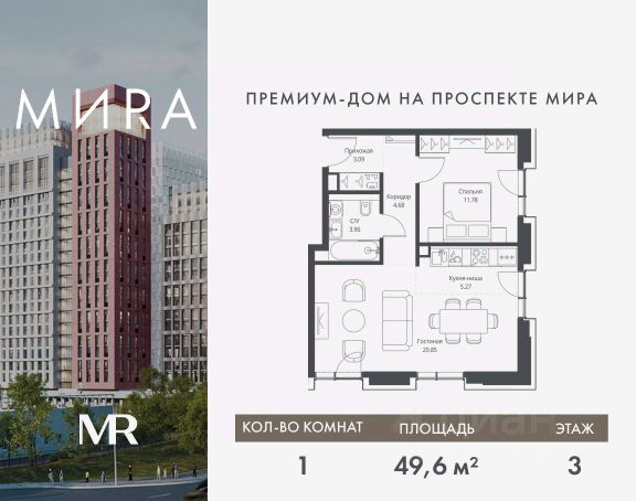 Прямая продажа от застройщика. Продаётся 1-комнатная квартира общей площадью 49.63 м² без отделки в доме премиум-класса МИRА на 3-м этаже 23 этажного дома. Квартира расположена в корпусе 2. Дом премиум-класса МИRA это: • Спокойный район с богатой историей и сложившейся инфраструктурой • Авторская архитектура на стыке классики и современности • Вход в парк прямо из жилого комплекса • Панорамные виды на Яузу, парки, ВДНХ и скульптуру "Рабочий и колхозница" • Удобные сервисы и безопасность для каждого резидента Расположение: Жилой квартал расположен в Алексеевском районе на северо-востоке Москвы, на второй линии домов, таким образом вы сможете дистанцироваться от шума и суеты проспекта Мира, но при этом будете жить недалеко от этой важной городской магистрали. Прямо у дома: • Парк Акведук • Река Яуза • Памятник "Рабочий и колхозница" Пешком: • 16 мин м. ВДНХ На автомобиле: • 12 мин ТТК • 15 мин Садовое кольцо • 12 мин Национальный парк "Лосиный остров" Благоустройство: Концепция благоустройства от бюро "ДРУЖБА" разработана в стиле "Лесная тропа". В уютном дворе расположились словно затерянные в лесу, площадки для отдыха. Они разделяются островками с травами, кустарниками, крупными камнями и деревьями, между которыми проходят узкие песчаные тропинки с деликатной подсветкой по вечерам. Центральной точкой притяжения для жителей станет главная площадь с фонтаном, которая открывается сразу из двух входных групп. Внутренний двор МИRA: • Детская площадка с зонами для игр малышей до трех лет и детей более старшего возраста • Спортивная площадка с профессиональным оборудованием для тренировок • Декоративные перголы • Воздушный арт-объект с подсветкой, похожий на облако • Чайный домик, где в отдельном отапливаемом павильоне можно в любое время года попить кофе с соседями или устроить камерное семейное чаепитие • Зоны для работы и отдыха с гамаком под навесом, скамейками и креслами Инфраструктура и окружение: В Алексеевском районе есть огромные благоустроенные парки, магазины, гимназии с высоким рейтингом и филиалы ВУЗов, частные и государственные детские сады, модные кофейни и фитнес-центры. В квартале МИRА предусмотрены: • 2 ресторана с видом на парк Акведук • 3 кафе • фитнес-студия • подземный паркинг на 330 машино-мест Компания MR предлагает своим клиентам специальные условия приобретения квартир в рамках программ ипотечного кредитования от банков-партнеров. Продам 1-комнатную квартиру от застройщика на проспекте Мира в Москве.