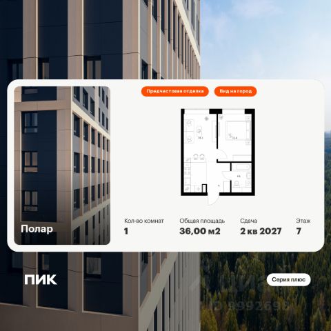 Продаётся 1-комн. квартира площадью 34,7 кв.м на 2 этаже 50 этажного дома (Корпус 1.5, Секция 2) проекта ПИК Полар. Светлый просторный подъезд на уровне земли, функциональная планировка, большие окна, предчистовая отделка. "Полар" расположен в двух минутах пешком от Медведковского заказника и вблизи метро "Медведково". Жилой квартал "Полар" строится на севере Москвы в районе Северное Медведково, в 17 минутах пешком от станции метро "Медведково". Все дома в "Поларе" - с индивидуальным дизайном. Над проектом работали сразу два архитектурных бюро - голландцы de Architekten Cie и российская студия Kamen Architects. Благодаря сочетанию двух разных направления в архитектуре, весь квартал будет выглядеть очень оригинально. У голландцев получились дома с чёткими линиями, динамичной архитектурой и панорамными балконами. А в башне Kamen отражается стремительность большого города и созерцательное спокойствие лесопарка. В квартал входит 6 жилых домов разной высоты, собственный детский сад, подземный двухэтажный паркинг, места для спорта, прогулок и отдыха. В просторных лобби - два выхода на уровне земли без порогов и пандусов. На входе установлены IP-домофоны, которыми можно управлять со смартфона. А на первых этажах откроются магазины, кафе и разные полезные сервисы. С верхних этажей "Полара" откроется впечатляющий вид на Медведковский заказник и Москву. В наших дворах мы установим удобные лавочки со встроенными портами USB и Type-C для зарядки мобильных устройств. Не нужно будет возвращаться домой, чтобы зарядить смартфон или ноутбук: можно весь день работать на свежем воздухе или сколько угодно снимать на видео играющего на площадке ребёнка. В шаговой доступности город построит общеобразовательную школу на 350 мест. Район Северное Медведково, где расположен "Полар", входит в городскую программу "Индустриальные кварталы". По ней бывшие промышленные зоны переделывают в комфортные для жизни пространства. Рядом с "Поларом" уже есть спортивный комплекс, новая школа, МФЦ и поликлиники. Артикул 874938 (Застройщик АО "Специализированный застройщик "ТМП 20") Продам 1-комнатную квартиру от застройщика в районе Северное Медведково в Москве.