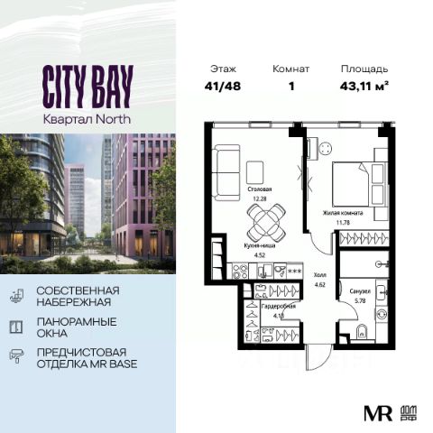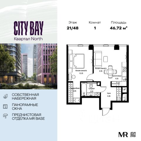 Прямая продажа от застройщика. Продаётся 1-к квартира общей площадью 49.09 м² с предчистовой отделкой в ЖК City Вау, квартале North, на 2-м этаже 48 этажного дома. Концепция жилого комплекса City Вау - настоящий город в городе с отлично развитой инфраструктурой и собственной благоустроенной набережной. На территории жилого комплекса расположено пять кварталов - Atlantic, Pacific, Indian, North, Cliff. Жилой квартал City Вау отличается оригинальной концепцией и выделяется среди других проектов такими характеристиками как: - Архитектура, - Виды из окон, - Природное окружение, вызывая гордость у жителей и восхищение у прохожих. Вся жизнь района Покровское-Стрешнево строится вокруг водных объектов: - Пойма реки Сходни с уникальной экосистемой, - Речка Химка и Химкинское водохранилище, - Москва-река, - Канал имени Москвы. Кругом вода, и местные с удовольствием этим пользуются. А сразу за рекой - центр водного спорта в Строгино с вейк-парком и яхт-клубами. Помимо воды, здесь очень много зелени: - Рядом Сходненский ковш памятник природы, естественный амфитеатр глубиной 40 метров; - Парк при усадьбе Братцево с фруктовым садом; - Дубовая роща "Маяк", - Алешкинский лес; - Лесопарк Покровское-Стрешнево с пляжами и бобрами. Главные транспортные артерии района: - Волоколамское шоссе, - Таганско-Краснопресненская линия метро и МЦД-2. Всего за 20 минут можно добраться до центра на машине или метро, а МЦД связывает ЖК City Вау с северными, восточными и юго-восточными районами. Компания MR Group предлагает своим клиентам специальные условия приобретения квартир в рамках программ ипотечного кредитования от банков-партнеров.