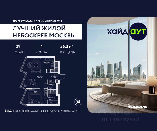 Продается 1-к квартира площадью 48.4 кв.м. на 26-м этаже в жилом комплексе премиум-класса Ривер Парк Кутузовский в Башне Изумруд Премиальный жилой комплекс Ривер Парк Кутузовский строится в одном из самых престижных районов столицы Дорогомилово, на берегу Москвы-реки с лучшими видами на Москва-Сити. Яркий проект в стиле эко-футуризма станет самым масштабным и самым высотным ЖК в локации Кутузовского проспекта. Расположение и Транспортная доступность: • На берегу Москвы-реки, напротив Москва-Сити • 600 метров до Кутузовского проспекта • Удобный съезд с ТТК • Прямой выезд на МКАД по Проспекту Багратиона. • В пешей доступности 3 станции метро: Фили, Парк Победы, Кутузовская, а также станция МЦД Фили. Архитектура от именитого бюро ADM отличается уникальной пластикой фасадов - башни словно парят в воздухе, играя гранями как драгоценные камни. Жилой комплекс состоит из 5-ти небоскребов с приватным парком 2 Га и внешней торговой галереей с открытым доступом. В закрытом внутреннем дворе уникальная по насыщенности клубная инфраструктура только для жителей: • Площадка Мультиспорт (баскетбол, футбол, воллейбол, большой теннис) • Детский игровой клуб Немо • Музыкальная студия • Клуб Гедонист с бильярдной • Студия стиля для стилистов и массажа • Гольф-симулятор • Караоке Впервые в Москве лаунж-зоны на крыше небоскребов, только для жителей: • Всесезонные беседки иглу • Джакузи • Гриль • Площадка для занятий йогой • Самые высоки качели на крыше в России • Видовые площадки Благоустройство комплекса занимает 3 гектара и разработано мировым экспертом по городским парковым ландшафтам - голландским бюро WEST8. Концепция проекта дать жителям отдохнуть от городского ритма и расслабиться среди природы. В Приватном парке уже высажены хвойные деревья-крупномеры сосны и ели. • Зеркальный пруд с арт-объектом • Две детские площадки • Точка спорта с тренажерами и турниками • Цветущий сад • Зеленый театр со сценой и проектором • Видовая зона отдыха с очагом • Солнечная терраса с лежаками На территории жилого комплекса планируется строительство коммерческого образовательного центра, включающего детский сад на 200 мест и школу на 460 мест.