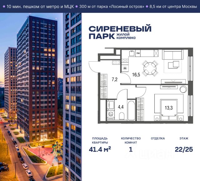 Продаётся просторная 1-комнатная квартира общей площадью 36.5 м² на 16 этаже в новом жилом комплексе "Сиреневый парк", расположенном в Восточном административном округе Москвы на улице Тагильская. Всего 10 минут ходьбы от станции метро "Бульвар Рокоссовского" и одноимённой платформы МЦК. Высококачественное монолитное строительство гарантирует сохранение тепла в доме, а наличие квартир с предчистовой и чистовой отделкой позволяет вам сэкономить время и сразу же переехать в свое жилье после покупки. Благодаря разнообразию планировок вы сможете выбрать идеальный вариант, соответствующий вашим предпочтениям и образу жизни. Предлагаются квартиры: - с просторными кухнями-гостиными, - с нишами для хранения вещей и отдельными гардеробными, - мастер-спальни с собственными санузлами, - большие комнаты с высокими потолками (2,9 м) и с увеличенными безопасными окнами (1,95 м) , которые наполнят ваш дом естественным светом; - с чистовой отделкой по двум дизайн-проектам на выбор; - с остекленными лоджиями и панорамными видами на лес. Каждая деталь в этом доме создана для вашего комфорта: - безбарьерная среда, - бесшумные скоростные лифты, - машиноместа в отапливаемом подземном паркинге и кладовые на -1 этаже с доступом из лифта, - развитая инфраструктура с супермаркетами, кафе, фитнес-клубами, салонами красоты и частным детским садом обеспечивает максимальное удобство жителям. В 300 метрах от ЖК расположен Национальный парк "Лосиный остров". Способы покупки: 100%, Trade-in, Семейная ипотека без наценки, стандартная ипотека. Запишитесь на просмотр в офис продаж и получите свою персональную скидку по акции Назови свою скидку. ЖК "Сиреневый парк" — гармония в деталях, совершенство в каждом моменте. Застройщик проекта - AFI Development. 1-комнатная квартира от застройщика на улице Тагильская в Москве.