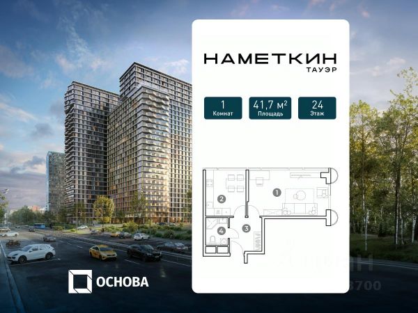 Продаются 1-к апартаменты площадью 44.1 кв.м. на 4-м этаже 29 этажного дома в "Наметкин Тауэр" от ГК ОСНОВА. Наметкин Тауэр - комплекс бизнес-класса с премиальным обслуживанием, располагается в районе Черёмушки на Юго-Западе Москвы. Архитектура — от известного бюро Mecanoo (Нидерланды). Комплекс включает 4 секции переменной этажности 2429 этажей и предлагает все преимущества бизнес-класса: двухуровневый подземный паркинг (2 этажа), панорамные окна и высокие потолки, дизайнерские лобби, продуманные общественные пространства, обширную собственную инфраструктуру - ресторан, супермаркет, медцентр и СПА. Уникальная особенность Наметкин Тауэр — небесный этаж: приватная досуговая зона для жителей на 25 этаже с выходом на террасы. Здесь будут доступны лаунж-зона, зона для спорта, площадка для детских игр, хобби-комната и зал для мероприятий. Также предусмотрены общественная гостиная с функциями коворкинга и бара, многоцелевой спортивный зал, теннисные и бильярдные столы. Исключительность приватных зон дополняют панорамные виды на Москву. В каждой секции запроектированы дизайнерские лобби, консьерж-сервисом 24/7, колясочными, комнатами для матери и ребёнка и гостевыми санузлами. Наметкин Тауэр находится вблизи 4-х станций метро в пешей доступности: 10-15 мин. до м.Новые Черемушки", м. "Воронцовская", м. "Калужская", м. "Зюзино". Рядом ведущие вузы Москвы, детские сады и школы. В окружении комплекса — Воронцовский парк, Битцевский лесопарк и Парк 70-летия Победы. Продам 1-комнатную квартиру от застройщика на улице Наметкина в Москве.