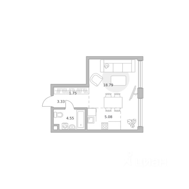 Продаётся 1-комнатная квартира 1588, площадью 33,50 м², на 5 этаже в ЖК "Мнёвники от Гранель" корпус 1. Стоимость — от 21754613 руб. Квартира без отделки, планировка односторонняя, окна на улицу.