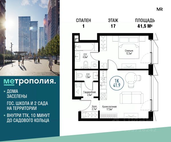 Продаётся 1-комнатная квартира общей площадью 42.30 м², на 6 этаже. Корпус сдан. 2 очередь застройки - это 12 башен которые состоят из 22 разновысотных секций от 7 до 30 этажей. Метрополия - это город городов. Коллекция лучших решений из самых прогрессивных мегаполисов планеты. Для тех, кому комфортно в любой точке мира. Все корпуса выполнены в своем индивидуальном стиле и получили свои названия в честь мировых метрополий. Эта концепция сохраняется и в дизайнерских лобби, которые выполнены в едином стиле с детальной проработкой декора и использованием характерных для каждого мегаполиса материалов. Высотные здания "Метрополии" образуют благоустроенное дворовое пространство на 4,6 га, которое украсят более 400 деревьев и несколько сотен кустарников, живописные цветочные клумбы и аккуратные газоны. Территория комплекса продумана до мелочей: - Запланировано строительство государственной школы, а также 2 частных и одного государственного детских садов; - Сформированы несколько тематических зон; - Предусмотрено место для спокойного отдыха с кафе; - Зона активности для сторонников здорового образа жизни с тренажерами для воркаута и площадкой для стритбола и петанка. Детские площадки разделены по возрастам от малышей до подростков, на всех площадках используется оборудование европейского производителя, уложено резиновое покрытие, которое позволяет детям играть в полной безопасности. Современные инженерные решения не оставят вас равнодушными: - Скоростные и бесшумные лифты; - Пожарная и охранная сигнализация; - Система навигации с ночной подсветкой по всей территории комплекса; - Wi-Fi-покрытие в зоне лобби и по всей территории комплекса; - Система распознавания лиц для доступа на территорию ЖК; - Система контроля и учета энергоресурсов; - Контроль доступа на парковку по системе считывания номеров. Продается 1-комнатная квартира от застройщика на проспекте Волгоградский в Москве.
