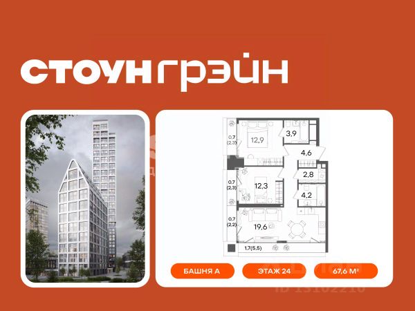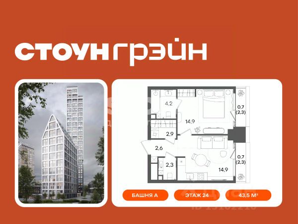 Продаются 1-к апартаменты площадью 39.10 кв.м. на 3-м этаже 30 этажного дома в "AIST RESIDENCE" от ГК МонАрх.