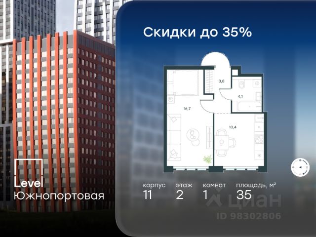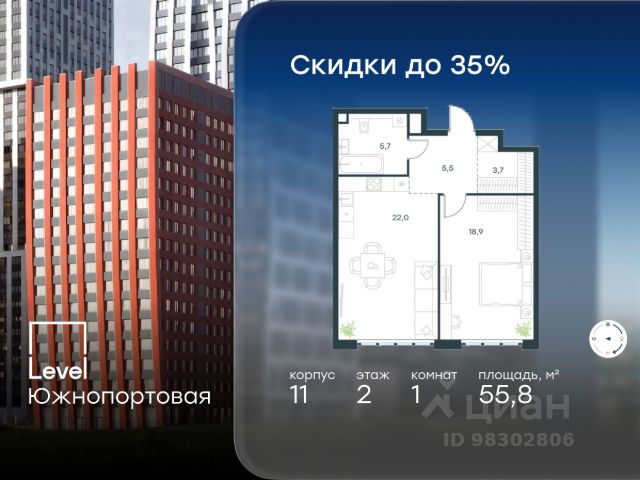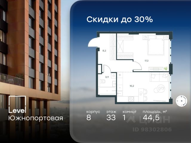 Цена указана с учётом скидки при 100%-й оплате, несубсидированной ипотеке, рассрочке (кроме программы "Рассрочка 0%"). В северной части района Печатники продается 1-комнатная квартира площадью 47.60 кв.м без отделки. Квартира расположена на 8 этаже 16-этажного корпуса 11 в жилом комплексе комфорт-класса Level Южнопортовая (компания Level Group/Левел групп). Отличная транспортная доступность: - 10 мин. пешком до станции метро "Кожуховская"; - 20 мин. пешком до станции МЦК "Дубровка"; - 3 мин. на авто до ТТК; - 13 мин. на авто до Садового кольца; - 15 мин. на авто до Бульварного кольца. Продуманный архитектурный проект: - авторская архитектура от бюро СПИЧ; - уникальные виды на реку, парки и достопримечательности города; - высота потолков в квартирах до 6 м; - окна высотой до 1,87 м с высоким коэффициентом сопротивления теплоотдаче. Расположение: Level Южнопортовая строится в северной части района Печатники - самой приближенной к центру. Здесь будет сформирован новый район "Южный порт", где построят крупный жилой и общественно-деловой центр, аналогичный Москва-Сити. В течение 10-12 лет в этом месте появятся не только жилые дома, но и развитая инфраструктура для жизни и работы. А еще совсем рядом находится набережная Москвы-реки, где планируется построить причалы для речных трамвайчиков и канатную дорогу. Уже сейчас вокруг жилого комплекса работают десятки магазинов и торговых центров, рядом расположено 6 парков, среди которых музей-заповедник "Коломенское". В 10 минутах пешком - 2 муниципальных и 2 частных детских сада, 7 общеобразовательных школ. Внутренняя инфраструктура: Для отдыха жителей в каждом корпусе предусмотрено лобби, оснащенное местами для отдыха, гостевыми санузлами и лапомойками, а в отдельных корпусах - камином. За счёт больших окон и высоких потолков пространства будут наполнены воздухом и светом. На первых этажах жилого комплекса откроются магазины, салоны красоты, фитнес-центр. Для детей строятся собственные детский сад и школа. Благоустройство: Внутренний двор комплекса разработан совместно с бюро GAFA. Основная идея - создать аналог Центрального парка в Нью-Йорке, гармонично сочетая высотные здания и большое изолированное парковое пространство. Вся площадь двора-парка будет огорожена и составит более 2 га, из которых 45% - озеленение. Одним из самых важных ландшафтных элементов здесь станет небольшая речка, наполняющаяся во время дождя. Вокруг неё появится сеть из островов, внутри которых расположатся тематические зоны спорта и отдыха. Технологии и инженерия: - автоматическая передача в управляющую компанию показаний квартирных счётчиков; - телефонная связь, телевидение и интернет на базе оптической мультисервисной сети; - гостевой Wi-Fi в лобби и на территории двора; - единый ключ доступа для входа на территорию комплекса.