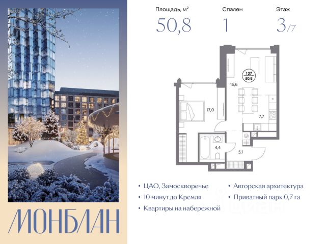 В клубном доме класса De Luxe "Космо 4/22", расположенном на острове Балчуг, напрямую от девелопера ГК "Галс-Девелопмент" представлена 1-комнатная квартира на 4 этаже общей площадью 47.60 м². Квартира предлагается без отделки, со свободной планировкой. Пространство позволяет воплотить дизайн - проект в соответствии с Вашими предпочтениями. Клубный дом на Космодамианской набережной "Космо 4/22" - это гармоничное сочетание классики и современности. Из окон открывается великолепный вид на знаменитую высотку на Котельнической набережной и Кремль. В клубном доме найдут продолжение аутентичные детали доходного дома проекта 1901 г. русского архитектора Николая Благовещенского, а сохраняемый исторический фасад станет частью нового здания. "Космо 4/22" находится всего в 7 минутах от Кремля с быстрым выездом на Садовое кольцо. Камерный проект класса De Luxe, подойдет тем, кто стремится к исключительному качеству и безупречности: - Исторический центр Москвы, дом со 120-летней историей; - Тайный сквер со скульптурами; - Элегантные лобби с лаунж-зоной; - Собственная зона для мероприятий резидентов; - Премиальный консьерж-сервис. Пространство двора будет закрыто ажурной кованой оградой, вечерняя подсветка дома в обрамлении зелени дополнит атмосферу уюта и камерности. Летним вечером приятно прогуляться в сторону Третьяковской галереи или полюбоваться панорамой Кремля с парящего моста в "Зарядье". В подземной части организован двухуровневый паркинг с зарядными станциями для электрокаров. Бесшумные скоростные лифты из паркинга поднимут вас на нужный этаж: быстро, комфортно и безопасно. В пространстве "Космо 4/22" принято предугадывать желания и предвосхищать ожидания. Продается 1-комнатная квартира от застройщика в районе Замоскворечье в Москве.