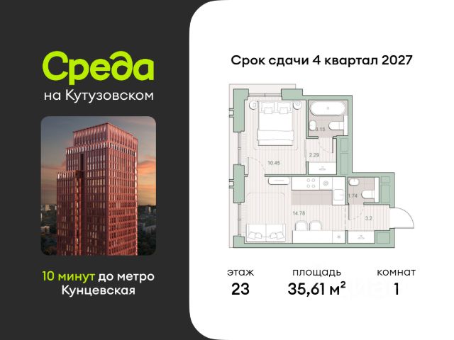 О квартире Продаётся однокомнатная квартира общей площадью 39.20 кв. м. с отделкой на выбор: черновая, White Box. Квартира на 4 этаже корпуса 5.2 в жилом комплексе бизнес-класса "Среда на Лобачевского". До метро "Аминьевская" 7 минут пешком. Развитый район с удобным выездом "Среда на Лобачевского" строится рядом с Аминьевским и Очаковским шоссе, отсюда можно доехать до МКАД или Ленинского проспекта за 10 минут. В районе уже есть всё для жизни: рестораны, кофейни, торговые центры, поликлиники и спортивные комплексы, школы и сады, бульвары и парки. - 7 минут ходьбы до станции метро "Аминьевская". - 15 минут пешком до станции МЦД-4 "Очаково". - 8-15 минут на машине до Кутузовского проспекта и ТТК. - До 15 минут езды до заказников "Долина реки Сетунь" и "Воробьёвы горы". Акции и спецпредложения - Выгода 12%: если внести 100% оплату или оформить семейную ипотеку под 6%. Действует до 13 апреля. - Низкие ставки по ипотеке: 0,1% в первый год или 0,11% в первые два года кредита. - Трейд-ин от "Среды": можно обменять свою текущую квартиру на новую. - Ипотека для семей с детьми: если ребёнку до 7 лет, предлагаем льготную ставку 3,5% О жилом комплексе "Среда на Лобачевского" - новый квартал в парадном стиле старой Москвы. Благодаря разноэтажной застройке во дворе комплекса будет много света и воздуха, без ощущения замкнутого пространства. Во дворе лаунж-зоны для медитации и работы, площадки для игр и кинопоказов, а на первых этажах - кофейни и магазины. Особенности - Высота потолков до 3,24 метра. - Панорамное остекление в пол. - Квартиры с террасами, мастер-спальнями и сквозными планировками. - Дизайнерские гранд-лобби в каждом корпусе. - Ландшафтный парк с зонами отдыха у воды. - Коворкинг на свежем воздухе. - Локации для спорта, игр и приватного отдыха. - Соседский бульвар с площадкой для подростков. - Подземный паркинг с двумя въездами. - Система бесключевого доступа. - Стрит-ритейл на первых этажах.