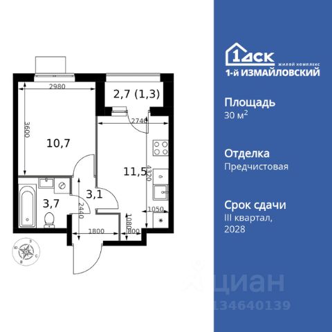 Продаётся 1-комн. квартира площадью 32,7 кв.м на 3 этаже 43 этажного дома (Корпус 1.1, Секция 1) проекта ПИК 2-й Иртышский. Светлый просторный подъезд на уровне земли, функциональная планировка, большие окна, c отделкой. "2-й Иртышский" возводится на востоке Москвы, между тремя станциями метро "Щелковская", "Черкизовская" и "Бульвар Рокоссовского". Проект включает жилые корпуса с индивидуальной архитектурой, школу и детский сад. Проект состоит из зданий разной высоты и разной по характеру архитектуры. Узнаваемой доминантой квартала станет башня из стекла и металла, напоминающая водопад. Квартал расположен в окружении нескольких знаковых рекреационных зон столицы. Вам понадобится всего несколько минут, чтобы оказаться в атмосфере спокойствия и слияния с природой. Всего 15 минут пешком, и вы в "Сиреневом саду", а дорога до национального парка "Лосиный остров" или Гольяновского пруда займёт 6 минут на авто. До Черкизовского детского парка и "Усадьбы Измайлово" можно доехать за 15 минут. До станции "Черкизовская" можно дойти пешком за 25 минут или доехать на общественном транспорте за 20. Дорога до станций "Бульвар Рокоссовского" и "Щёлковской" займёт 25 минут на общественном транспорте. Автомобилисты оценят удобные выезды на Щёлковское шоссе и СВХ. Путь до МКАД займет около 14 минут, до ТТК - 20. Артикул 980564 (Застройщик ООО "СЗ "Л-Девелопмент") Продается 1-комнатная квартира с отделкой в районе Гольяново в Москве.