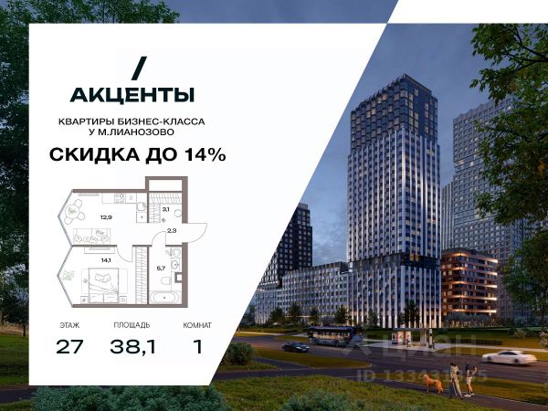 Однокомнатная квартира для молодой пары или начинающего специалиста. -В квартире предусмотрено смешанное остекление -Дополнительные окна в комнатах наполнят квартиру светом и теплом -Кухня-гостиная с зонированной кухней и пространством для отдыха -Приватная изолированная спальня с зоной гардеробной -Удобная ниша в коридоре для системы хранения Молодой район для жизни "Акценты" в классе бизнес-лайт — точка роста на севере Москвы. Он предлагает элегантные и строгие фасадные решения, авторский ландшафтный дизайн, а также функциональные и доступные по цене планировки. Проект находится в семи минутах пешком от станции метро "Лианозово" и одноименной МЦД-1. Добраться до МКАД можно будет за 10 минут на авто, а дорога до центра займет около 20 минут. Жилой комплекс, расположенный в районе Восточного Дегунино, предлагает развитую инфраструктуру для тех, кто ценит выбор. Он имеет удобный доступ не только к транспорту, но и к паркам, школам, садам, больницам и другим социальным объектам. В пешей доступности находятся 4 поликлиники, 5 школ, 6 детских садов, 3 бассейна и баскетбольная академия. Еще рядом есть несколько лесопарков: "Лианозово" с аттракционами и спортивными площадками для тенниса, волейбола и баскетбола, "Останкино" с конным клубом, прудом и пейнтбол-площадками. А "Северные Дубки" — это завораживающее пространство для прогулок под кронами вековых дубов, берез и лип. Кроме того, в районе не будет скучно и юным жителям. Можно оттачивать трюки в скейтпарке "Союз". Ловким и прыгучим советуем записаться в акробатический центр "Белка".