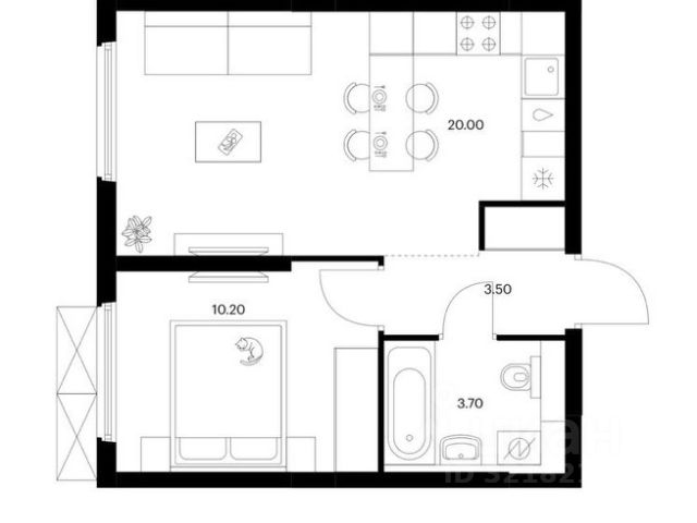 Комфортная планировка с кухней-гостиной 17кв.м., изолированной спальной 10,2кв.м., санузел 3,8кв.м. Потолки 2,63м. Панорамные окна, которые делают пространство легче и светлее, а вид из квартиры становится впечатляющим. Потолки натяжные с освещением, пол ламинат /плитка, стены фактурные обои с покраской. Межкомнатные и входная дверь.