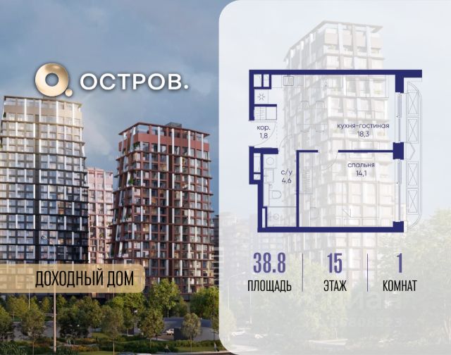 Продаётся 1-комн. квартира от застройщика: общая площадь 42.90 м², жилая 15.40 м², кухня 20.60 м², 10-й этаж, жилой квартал "Остров 14", корпус 1 (секция 1). Срок сдачи: 2 квартал 2029 года. 1 совмещенный санузел. Остров.14 ДОХОДНЫЙ ДОМ - ЧАСТЬ ПРОЕКТА "ОСТРОВ", В 10 МИНУТАХ ОТ МОСКВА-СИТИ, В 15 МИНУТАХ ЕЗДЫ ОТ САДОВОГО КОЛЬЦА. Квартиры для сдачи в аренду Инвестиционный продукт для получения постоянного дохода Квартиры с отделкой и мебелью, и с управлением "под ключ" Постоянный доход для инвесторов, отельный сервис для арендаторов Востребованные для аренды планировки: студии, 1- и 2-комнатные квартиры 28-64 м2 Полная комплектация квартир: отделка, мебель, бытовая техника, кондиционеры Постоянный поток арендаторов - 10 минут от Москва-Сити, 5 минут от метро "Мневники", самодостаточная инфраструктура в квартале и собственная клубная инфраструктура в доме, спортивный, рекреационный и деловой кластеры на территории ОСТРОВА
