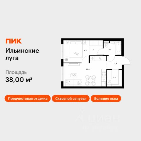 В продаже — однокомнатная квартира с чистовой отделкой, общей площадью 46,4 кв. м. Квартира расположена на пятом этаже восьмиэтажного корпуса Оптимум в квартале В16 нового района СберСити, который строит Сбер. Архитектуру квартала В16 создало итальянское бюро ARCHEA middle east: каждый дом узнаваем, но вместе они складываются в спокойный, цельный ансамбль. В облицовке сочетаются тёплые оттенки кирпича и металла, за счёт игры фактур фасады выглядят живыми и меняются в разное время дня. Строгая геометрия поддерживает ритм города, а мягкая природная палитра помогает чувствовать себя дома, а не в деловом квартале. Дом возводится по технологии монолитного строительства. Все квартиры передаются с чистовой отделкой. Отделка предлагается на выбор в трёх стилях — Новая классика, Скандинавский и Средиземноморский — в нескольких цветовых решениях. В квартирах предустановлена система "умный дом", объединяющая управление квартирой, домом и прилегающей территорией. Можно регулировать климат и освещение голосом или через смартфон. Квартал состоит из девяти домов средней этажности — от 7 до 10 этажей. Корпуса формируют большой внутренний двор площадью два гектара. Во дворе предусмотрены зоны для разных сценариев: просторные площадки для детей, пространства для активного досуга и спорта, тихие места для отдыха и спокойного времени, а также удобные рабочие места под открытым небом. Здесь легко найти своё — для жизни, здоровья и занятий тем, что действительно нравится. В доме предусмотрены: уютное лобби с зоной ожидания, зона коворкинга в лобби, детская игровая комната на первом этаже, общественная терраса для досуга резидентов с диванной группой и зоной для йоги с настилом, лапомойка, санузел, помещение для хранения колясок и велосипедов, подземный паркинг. СберСити — это новый жилой и деловой район на западе Москвы, в одном из самых экологически чистых и престижных мест столицы. Это первая в России и крупнейшая в мире инновационная городская среда, созданная по международным стандартам зелёного проектирования. Здесь внедряются решения в области энергоснабжения, вакуумного мусороудаления, тестирования зелёных технологий, а в дальнейшем — системы искусственного интеллекта для управления домами и городской инфраструктурой. Строительство проекта началось в 2021 году, заселение первых корпусов — с лета 2024-го. Общая площадь территории — 461 га, из них более 2,5 млн кв. м жилья и около 833 тыс. кв. м офисных пространств. Будет построено 7 школ, 13 детских садов и 2 поликлиники. В СберСити будут жить 65 тыс. человек и работать 70 тыс. Развитием территории занимается АО "Рублёво-Архангельское", входящее в группу Сбер. СберСити — место, где хочется жить, работать и растить детей. Переезжайте в СберСити!