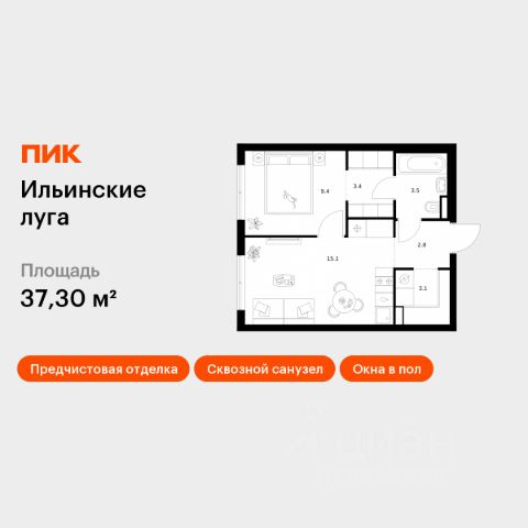 Продаётся 1-комн. квартира площадью 37,3 кв.м на 9 этаже 9 этажного дома (Корпус 4.3, Секция 2) проекта ПИК Ильинские луга. Светлый просторный подъезд на уровне земли, функциональная планировка, большие окна, предчистовая отделка. Жилой район "Ильинские луга" находится в 10 километрах от МКАД по Новорижскому шоссе, в 20 минутах на автомобиле от станций метро "Волоколамская", "Тушинская" и "Строгино". В будущем ближе к проекту, в 9 минутах пути на машине, откроется станция "Ильинская" Рублёво-Архангельской линии, которая будет соединять Арбатско-Покровскую линию и Большую кольцевую линию. Сейчас в квартале начались продажи в корпусах 3.2, 3.3, 3.4, 3.5 и 3.6. "Ильинские луга" — масштабный проект, в который входит девять детских садов, четыре школы и поликлиника. Он строится в престижном и экологичном районе среди лесов и памятников природы. За 5 минут от жилого квартала можно доехать до Рублёво-Успенского шоссе, а за 30 минут — до центра Москвы. До крупного торгового центра "РИГАМОЛЛ" всего 5 минут на автомобиле, а до ТЦ "Твой дом" и гипермаркета "Глобус" — 10 минут. В "Ильинских лугах" строятся только девятиэтажные дома — такая архитектура соответствует спокойной жизни за городом. В каждом дворе-парке есть места для отдыха, детские и спортивные площадки. А ещё, здесь уже открыт большой PlayHub "Гравити" — современное игровое пространство с космической тематикой, холмами, зонами для игр и отдыха жителей любого возраста. На первых этажах уже работают магазины, кафе и пекарни. Места для отдыха от "Ильинских лугов" тоже недалеко: 10 минут на машине — и вы в музее-усадьбе "Архангельское". Также рядом находится Лохин остров — памятник природы, где водятся речные черепахи, есть места для кемпинга и возможность сплавиться по реке. Артикул 1011970 (Застройщик ООО "СЗ "ГРАДОЛИМП")