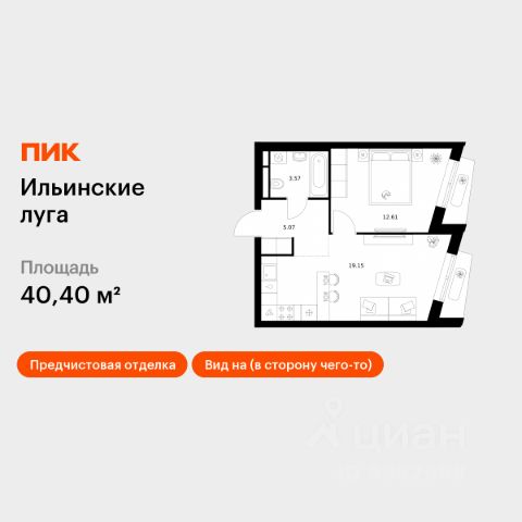Продаётся 1-комн. квартира площадью 40,5 кв.м на 9 этаже 9 этажного дома (Корпус 3.3, Секция 1) проекта ПИК Ильинские луга. Светлый просторный подъезд на уровне земли, функциональная планировка, большие окна, c отделкой. Жилой район "Ильинские луга" находится в 10 километрах от МКАД по Новорижскому шоссе, в 20 минутах на автомобиле от станций метро "Волоколамская", "Тушинская" и "Строгино". В будущем ближе к проекту, в 9 минутах пути на машине, откроется станция "Ильинская" Рублёво-Архангельской линии, которая будет соединять Арбатско-Покровскую линию и Большую кольцевую линию. Сейчас в квартале начались продажи в корпусах 3.2, 3.3, 3.4, 3.5 и 3.6. "Ильинские луга" — масштабный проект, в который входит девять детских садов, четыре школы и поликлиника. Он строится в престижном и экологичном районе среди лесов и памятников природы. За 5 минут от жилого квартала можно доехать до Рублёво-Успенского шоссе, а за 30 минут — до центра Москвы. До крупного торгового центра "РИГАМОЛЛ" всего 5 минут на автомобиле, а до ТЦ "Твой дом" и гипермаркета "Глобус" — 10 минут. В "Ильинских лугах" строятся только девятиэтажные дома — такая архитектура соответствует спокойной жизни за городом. В каждом дворе-парке есть места для отдыха, детские и спортивные площадки. А ещё, здесь уже открыт большой PlayHub "Гравити" — современное игровое пространство с космической тематикой, холмами, зонами для игр и отдыха жителей любого возраста. На первых этажах уже работают магазины, кафе и пекарни. Места для отдыха от "Ильинских лугов" тоже недалеко: 10 минут на машине — и вы в музее-усадьбе "Архангельское". Также рядом находится Лохин остров — памятник природы, где водятся речные черепахи, есть места для кемпинга и возможность сплавиться по реке. Артикул 993931 (Застройщик ООО "СЗ "ГРАДОЛИМП")